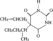 释义 | 他布比妥 C11H16N2O3=224.26 CAS-115-44-6 5-(1-甲丙基)-5-(2-丙烯基)-2,4,6(1H,3H,5H)-嘧啶三酮。 5-(1-Methypropyl)-5-(2-propenyl)-2,4,6(1H,3H,5H)-pyrimidinetrione. 烯丙基-5-仲-丁基巴比土酸。 Allyl-5-sec-butylbarbituric acid. 催眠镇静药。 Talbutal,Lotusate,Lutawin,Lotusate,Profundol. INN,USAN,USP. |