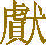 獻“献”的繁体字。 上一条: 献 下一条: 锁 獻“献”的繁体字。 上一条: 献 下一条: 见 ![]() ![]() ![]() ![]() ![]() ![]() ![]() ![]() ![]() ![]() ![]() ![]() 獻献(1次) 进献;献祭。何~蒸肉之膏《天》 獻❶猶“奏” 也。《詩經·小雅·賓之初筵》: “射夫既同,獻爾發功。” 鄭玄箋:“獻,猶奏也。” 獻xiànAB49 獻xiànX080 〖獻〗 粵 hin3〔憲〕普 xiàn ❶ 獻祭。范曄《後漢書.百官志二》:「郊祀之事,掌三〜。」(三〜:祭祀時三次獻酒儀式。)❷ 奉獻,進獻。司馬遷《史記.廉頗藺相如列傳》:「和氏璧,天下所共傳寶也,趙王恐,不敢不〜。」 ❸ 提出。《列子.湯問》:「其妻〜疑。」 ❹ 表現,呈現。柳宗元《永州八記.鈷鉧潭西小丘記》:「舉熙熙然迴巧〜技。」(全都歡快地呈巧獻技。) 獻獻,甲骨文作 獻献, |