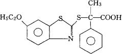 C18H17NO3S2=359.46 CAS-79071-15-1 (±)-α-(6-乙氧-2-苯并噻唑基)硫代-2,2-甲基苯醋酸。 (±)-α-(6-Ethoxy-2-benzothiazolyl)thio-2,2-methylbenzeneacetic acid. (±)-α-[(6-乙氧-2-苯并噻唑基)硫代]氢化阿托酸。 (±)-α-[(6-Ethoxy-2-benzothiazolyl)thio]hydratropic acid. 降血脂药。 Tazasubrate. INN,BAN,USAN.  |
