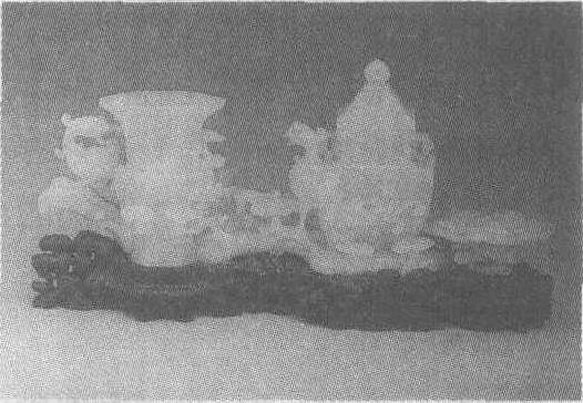 释义 | 玉如意双尊 玉如意双尊清。高13.4厘米,长31.8厘米。台北故宫博物院藏。由一整块青玉琢制而成。下部雕一如意,与如意相依并列地立雕着两个玉尊。一只呈六边形,颈部有一回首站立的玉凤;另一只玉尊呈长方形,有覆斗形盖和花苞钮,肩的一耳边有一引颈的立凤。如意和玉尊上琢出一朵朵灵芝。玉尊仿商周青铜器制作,反映了清朝宫廷艺术的仿古作风。 ☚ 莲藕玉洗 “大清乾隆仿古”玉盖匜 ☛ |