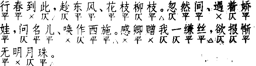 释义 | 玉抱肚 玉抱肚梁辰鱼 《浣纱记》 ![]() 全曲六句:4△,7△。7▲,7△。7△,7△。第三句可叶仄韵,如《荆钗记·大逼》、《牡丹亭·训女》、《鸣凤记·桑林奇遇》都是。第四句可叶仄韵,如《牡丹亭·训女》、《红拂记·天涯知己》、《义侠记·旌勇》都是。第四句后、第五句前,有增四字一句者,平仄为平平×仄,不叶韵,如《鸣凤记·桑林奇遇》三支之“相依抚字”、“相逢如故”、“天涯翘首”,《琵琶记·糟糠自厌》之“相看到此”,《绣襦记·堕计销魂》之“一朝无奈”、“双亲老矣”,《玉簪记·诳告》之“无瓜抱蔓”、“云堂松舍”,《红拂记·天涯知己》之“明朝连辔”都是。《千金记·灭项》前四句之后,作三句:“八千子弟尽成空,几多霸业如春梦,听说罢心怀气冲”,与原调大不同。〔玉抱肚〕联套多用一支,叠用成套二支至四支,叠用四支者较多,多用在一出戏的末尾。小令常用。“抱”一作“胞”。词牌及诸宫调、北曲均有〔玉抱肚〕,均不同。以〔玉抱肚〕为主的集曲有〔玉山供〕(或作〔玉山颓〕)、〔玉挂排枝〕、〔玉供莺〕、〔双玉供〕、〔玉抱金娥〕,见《南词简谱》。 ☚ 好姐姐 川拨棹 ☛ 玉抱肚 玉抱肚见宋杨无咎《逃禅词》。《词律》卷二○、《词谱》卷三八收录,双调,一百四十一字,上片九句六仄韵,下片十五句九仄韵。此调宋词仅存此首。又,《鸣鹤馀音》卷八录元无名氏词,体格与杨词不同。其词双调,一百三十六字,上片十二句八仄韵,下片十六句十仄韵,《词律》、《词谱》均未载。 ☚ 玉连环 玉京山 ☛ 玉抱肚书信,这是人们交流感情、传递信息的重要桥梁。在战乱时期,“烽火连三月,家书抵万金” (杜甫 《春望》 ) 。而对于那些热恋而不在一起的人来说,这更是不能缺少的。这首小令就非常真切地抒写了主人公盼望情人来信的急切心情。 “频频书寄,止不过叙寒温别无甚奇”。情人频频地写信寄来,信中只不过都是一些叙谈冷暖寒热的家常话,没有什么要紧稀奇的东西。可是,“你便一日间千遍书来,我心中也不嫌聒絮”。这究竟是什么原因呢? 因为对于热恋中的人来说,情人的一笑一颦,一言一行,一个字一句话,都饱含深情,使人备感亲切。这样的话再平常也觉得稀奇、珍贵; 再重复,也不觉得絮叨、罗嗦。这样的信写得越多,越能看出恋人爱情之热烈和迷恋程度之深。所以,即便是每日间寄千遍书信来,也不会感到心烦。 “书呵,你原非要紧的好东西,为甚你一日迟来我便泪垂。”这是主人公对那一封封情书的深切感慨。这些情书“原非要紧的好东西”,因为它“止不过叙寒温别无甚奇”, 可是, 且不要说一日不来, 就是“一日迟来”也会使我垂泪,为什么会这样呢?其原因就在于这是情人的来信,其中的话语虽然平常,但意义却非同一般。对于主人公来说,这实际上是比其他什么都重要都珍贵的东西。“一日迟来我便泪垂”,也从另一个方面深刻地反映了主人公对恋人的极度痴迷,他无时无刻不在挂念着情人的消息,如果哪天信迟来一会儿,他也会坐立不安,两眼垂泪。 冯梦龙在其《太霞曲语》中对自己的散曲作过这样的评论: “子犹诸曲,绝无文采,然有一字过人,曰 ‘真’ ”。这首小令就正如他自己所评论的那样,语言不饰雕琢,明白如话,而感情则真挚动人,出自肺腑而又感人肺腑。 古代名物 > 冠服類 > 身服部 > 襟袖帶佩 > 玉抱肚 玉抱肚 yùbàodù 指玉帶。宋·陸游《老學庵筆記》卷七:“王荆公所賜玉帶,闊十四搯,號玉抱肚,真廟朝趙德明所貢。”元·張憲《走馬歌》:“潛蚊雙綰玉抱肚,朱鬣生光散紅霧。” |