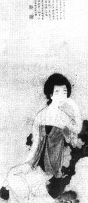 【作品赏析】: 据作者自识,此画作于1640年(崇祯庚辰)春,是画家所作一套仕女画的第十八幅。 画中倚湖石而坐的仕女,右手持扇,左手支颐,透过文静的姿容,显得含情脉脉。这就是作者在自题诗中咏叹的“阆苑仙媛”形象。所画仕女,比例匀称,衣纹圆润流畅,显出力度和弹性,且主辅分明。在形象表现上,富有写实意味。著意描画出罗衣透体的感觉,且以鲜丽的红色(朱砂)内衣突出了袒露的胸部;面部的表现,手法更为细腻,以轻柔的线描勾出轮廓,目如丹凤,修眉、樱口、胆鼻。背景用浅灰色烘染,加之玲珑剔透的湖石的深墨色,既丰富了空间层次,更托出人物体态的窈窕和肌肤的白皙。。【作者介绍】: 黄石符,字圮人,福建人。 活动于明末清初,生卒年未详。清代姜绍书的《无声诗史》说他“善画仕女,丰颐广袖,雾鬓云鬟,颇得周昉遗格”,从这幅画得到了印证。。  明 黄石符 轴 纸本设色 纵113.8厘米 横62.2厘米 藏故宫博物院 |