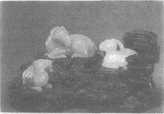 古代名物 > 神異類 > 異物部 > 其他 > 玉羊 玉羊 yùyáng 傳說中的祥瑞之物。其說始見於南北朝時期。《宋書·符瑞志下》:“玉羊,師曠時來至。”南朝梁·蕭統《七契》:“太平之瑞寳鼎,樂協之應玉羊。”《唐開元占經》卷一百十九引南朝梁·孫柔之《瑞應圖》:“鐘律和調,五聲當節,則玉羊見。” 玉羊 玉羊天狼星的别名。南朝·梁·刘孝绰《望月有所思》诗:“玉羊东北上,金虎西南昃。” ☚ 兔 环枢 ☛ 天狼星【同义】总目录 天狼星玉羊玉羊 玉羊宋。一只高4.3厘米,长7.2厘米,另一只高3.7厘米,长4.7厘米,第三只高3.4厘米,长5.6厘米。台北故宫博物院藏。三只羊分别由白玉和黄玉雕琢,均呈卧伏状。一只颈间挂绳索,首微昂起;一只独角,有髯,颈后有三撮毛,注视着侧上方;另一只踡身回首。三只玉羊制作精良,配一山石状木座,相互之间似在问答呼应,形象温润可爱。“羊”谐音作“祥”,玉雕三羊寓意吉祥,象征“三羊开泰”“吉祥如意”。
