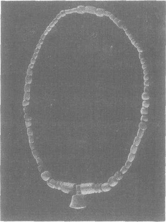 释义 | 玉项饰 玉项饰铜石并用时代良渚文化早期。周长76厘米。1984年上海市青浦县福泉山墓葬出土。上海博物馆藏。项饰由管、珠、坠共71粒组成,其中5粒为鲜艳的湖绿色,另有几颗呈半透明的绿色,多数浸蚀后呈鸡骨白色或黄褐色。项饰中心的一粒呈钟形,制作规矩而精巧。其两侧的管状珠上饰有简化的兽面纹,兽面上双目和嘴清晰可辨。这是首次发现的粒珠上饰有兽面纹的纹饰。良渚文化见“方柱形玉尖状器”条目。 ☚ 鸟兽纹玉琮 兽面纹玉琮形坠 ☛ |