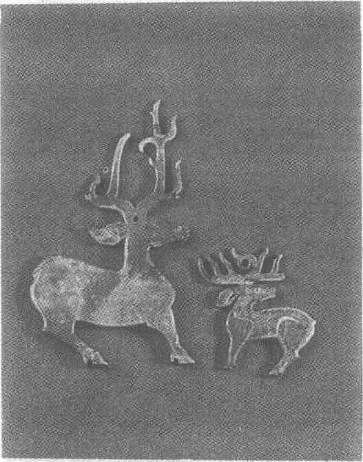 释义 | 玉鹿(2件) 玉鹿(2件)西周中期。大者高8.4厘米。1974年陕西省宝鸡市茹家庄伯墓出土。陕西省宝鸡市博物馆藏。玉料呈黄褐色,体扁平,为鹿的侧影影象。两鹿鹿角高耸,枝杈繁茂。大鹿为臣字形目,昂首前视,小鹿为圆形目,回首瞭望。将两鹿相对摆放在一起,形象十分有趣。有如大鹿率小鹿漫游在茫茫草原上,大鹿停步观察前方,小鹿顺意行动。作者以夸张的线条构出双鹿的形体,并将这种食草动物温驯而优雅的性格通过线条表现出来。弧形阴线表示身体的肌肉。肢、蹄的关节部位刻画精致,能表现出跋涉时的力度。一般雄性鹿有角,而驯鹿雌雄均有角。此大小鹿均有角,可能是驯鹿母与子的形象。 ☚ 玉人头 玉虎 ☛ |