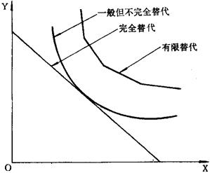 释义 | 代替品 可以被其他商品代替的商品。 或者,可以被另一种投入品代替的投入品。在新古典理论中,一般假定存在代替的可能性,以说明无差异曲线和等产量曲线平滑的原因。在代替受到限制的地方,这种平滑就消失,并被“片断直线”的曲线所代替。 如图所示:图中的直线表示完全替代,圆滑的曲线表示一般替代,但并不完全替代,“片断直线”的曲线则表示不完全替代。 |