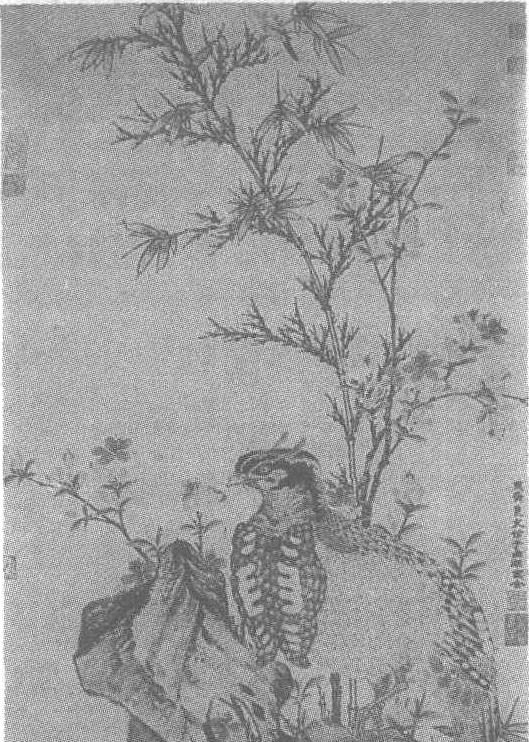 释义 | 王渊竹石集禽图轴 王渊竹石集禽图轴又名《花竹禽雀图轴》。元。王渊绘。纸本墨笔。纵137.7厘米,横59.5厘米。上海博物馆藏。王渊,字若水,号澹轩,一号虎林逸士,钱塘(今杭州)人。少习丹青,曾受赵孟頫指教,擅画花鸟、山水、人物,而尤精于水墨花鸟。受赵孟頫绘画思想影响,师法北宋、唐人。其花鸟画兼工水墨、设色二体,内容、题材及技法均承继黄筌一派。他的设色花鸟,富丽精工,赵孟頫见后,叹为黄筌复生。而其水墨花鸟则别有创新,在工整的双勾基础上,吸收了南宋扬无咎、汤正仲、赵孟坚一派墨笔技巧,将工整与写意,严密与雅淡的风格结合起来,笔势含蓄,墨色温润,格调质朴,别具神韵。王渊这种工细的水墨花鸟与文人画兴起时崇尚雅淡静泊的审美思潮相关,在绘画史上占有重要的地位。王渊的山水画师法郭熙,还创作过宗教壁画,是一位多才多艺的职业画家。此图画溪畔竹石丛中禽鸟翔集的情景。缓坡上杂草丛生,湖石危立,石上伫立一只肥壮的雄角鹰,绒毛丰厚,羽彩斑斓,利喙紧闭,大睁着圆眼,专注地凝视前方,神色威重。石下坡前一只雌鹰回首仰望,意态生情。石后新竹秀挺,杜鹃盛开,竹梢栖落一只小雀,黑头黑尾,白腹灰背。另有三只则在空中飞鸣嬉闹,生动活泼,与角鹰形成了鲜明的动、静对比。此图笔墨灵变,技法纯熟。鹰雀用笔精工、细密,湖石勾皴粗重、方硬,纤竹疏叶细枝以双钩法为之,杜鹃花叶润泽鲜嫩,纯用水墨晕染,清新素雅,神韵宛然。显示了画家深厚的功力。图中作者自识:“至正甲申夏六月望,钱塘王若水为思斋良友作于西湖寓舍。”下钤<王若水印>、<墨妙笔精>二印。甲申至正四年为公元1344年。图中有明人朱维新题诗,曾经清人梁清标、乾隆内府收藏。 ☚ 赵雍青影红心图轴 盛懋秋舸清啸图轴 ☛ |