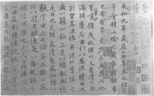 释义 | 王羲之神龙本兰亭序 王羲之神龙本兰亭序东晋。白麻本。行书。纵24.5厘米,横69.9厘米。北京故宫博物院藏。王羲之(见《王羲之行草书雨后帖》条目)书。《兰亭序》是王羲之的著名书迹。东晋永和九年(公元353年)三月三日,会稽内史王羲之与朋友谢安等41人,在山阴(今浙江绍兴)的兰亭举行了“修楔”盛会,人们饮酒赋诗,王羲之为此写序,即《兰亭序》草稿。又称《兰亭帖》、《兰亭叙》、《楔序》、《楔帖》等。《兰亭序》虽为草稿,却是王羲之酒酣兴逸书之,后复书之皆不及原作,王羲之对此书很珍视。唐太宗李世民极爱王羲之书法,得此帖后,命弘文馆拓书人冯承素、诸葛贞、韩道政、赵模等人,双钩廓填摹副本,分赐诸王及近臣,太宗驾崩后,《兰亭序》殉葬昭陵,真迹永绝人间,此事实为一大遗憾。《兰亭序神龙本》原题“唐模兰亭”,卷上有唐中宗神龙年号小印,故称“神龙本”又称《神龙半印本兰亭序》、《冯承素摹兰亭序》、《唐摹兰亭》。卷上有<绍兴>印,还有元郭天锡、鲜于枢,明杨士奇、王济、丰坊、李廷相、项元汴,清曹溶、陈定、季寓庸等题跋、鉴赏印,乾隆入藏内府。此书摹写精妙,笔力爽健、灵动,笔法随意、自然,摆脱摹写的拘谨。《珊瑚网书跋》、《平生壮观》、《大观录》、《石渠宝笈续编》、《石渠随笔》等皆有著录。 ☚ 王羲之行草书雨后帖 王羲之小楷书黄庭经 ☛ |