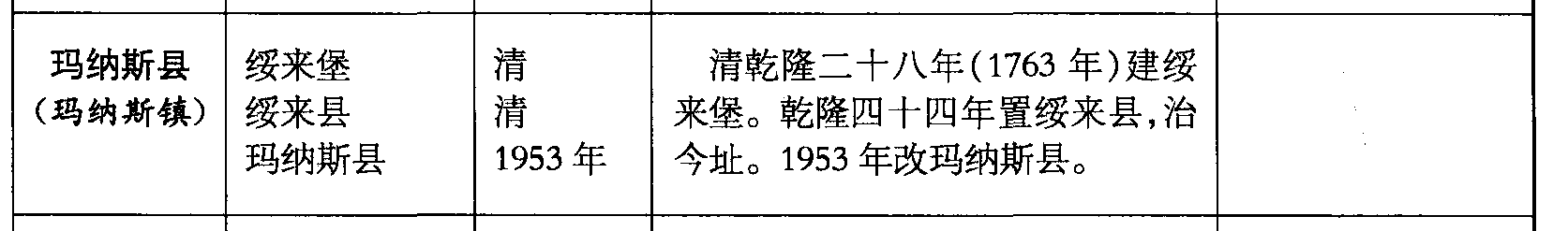 玛纳斯县(玛纳斯镇)绥来堡绥来县玛纳斯县清清1953年清乾隆二十八年(1763年)建绥来堡。乾隆四十四年置绥来县,治今址。1953年改玛纳斯县。