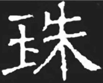 珠zhū (10画) 【提示】王,位于字左时,末笔的横改提。朱,中间是竖,不是竖钩。