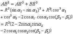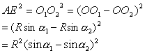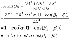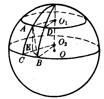 ![]() ![]() ![]() 图3 ❸经度不同,纬度不同设A在北纬α1度,东经β1度,B在北纬α2度,东经β2度,球半径为R,则A,B两点的球面距离为过A,B两点的大圆的劣弧 ![]() 在△O2BE中,有 BE2=O2E2+O2B2-2O2E·O2Bcos(β2-β1) ![]()