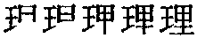 理lǐ (11画) 【提示】王,位于字左时,末笔横改提。里,口内一横宋体与左右两边相接,楷体与左右两边相离。