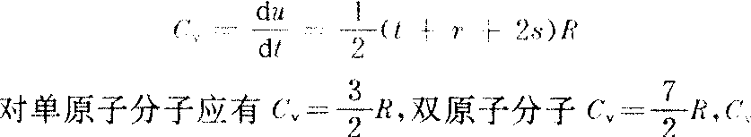 释义 | 理想气体的内能 理想气体的内能lixiang qiti de neineng理想气体系统由其内部状态所决定的能量。根据理想气体的微观模型,理想气体分子间除相互碰撞外无相互作用,所以从微观上说理想气体的内能仅包括分子热运动的各种动能以及分子内原子间的振动能量(振动动能及势能)。根据能量按自由度均分定理,理想气体系统的内能为 其中M是系统的总质量,μ是摩尔质量,NA是阿伏伽德罗常量,k是玻耳兹曼常量,R是气体常量,t、r、s分别是分子的平动自由度、转动自由度、振动自由度。2s的根据是这样的:分子内原子的振动可以看作是简谐振动,由简谐振动的理论可知,在 一个周期内振动动能与振动势能的平均值是相等的,这样与简谐振动的动能相对应的有同样大小的一份振动势能,所以与每个振动自由度对应的有两份能量。 理论计算与实验结果都表明理想气体的内能仅是温度的函数,即U=U(T)。 由理想气体的内能可以计算理想气体的定体摩尔热容Cv,1个摩尔的理想气体的内能为 根据定体摩尔热容的定义 的值与气体的种类及温度无关。根据经典的能均分定理得出的上述结果是有缺陷的,这缺陷只有用量子理论才能得到完满的解释。 ☚ 内能 分子模型 ☛ |