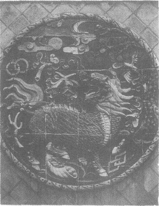 释义 | 琉璃影壁方心 琉璃影壁方心清道光。坛径2.4米,麒麟高1.8米。山西省介休县后土庙门前影壁背面。琉璃是用于建筑艺术装饰的一种陶器。以陶土作胎,施以含氧化铅的琉璃釉,多数为二次烧成。战国时期已出现琉璃工艺,六朝时已将琉璃用于建筑。山西琉璃自北魏以来享有盛名,在寺院中有不少琉璃遗存。介休县的后土庙建造年代不详,历经几毁几修,现存殿堂多为明、清所建。寺庙建筑全部饰以琉璃瓦件,多为清嘉庆、道光年间作品。此门前影壁的圆坛方心,内塑麒麟望月。麒麟体肥壮,怒目圆睁,口大张。身体施绿釉,鬃毛、尾、蹄以黄釉装饰。周围有菩提树、流云、法螺等法器。装饰繁缛,色彩对比强烈,是清代琉璃饰件的珍品。“麒麟”是古代传说中的动物,作为吉祥的象征。 ☚ 彩绘悬塑胁侍菩萨像 辎车画像石 ☛ |