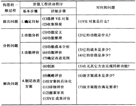 释义 | 价值工程对象的选择方法 用以选择价值工程对象的各种定性和定量方法:(1)经验分析法。 选择熟悉业务、经验丰富的人员,根据选择原则和应考虑的技术经济因素,集体研究,共同确定价值工程对象的一种定性分析方法。(2)ABC法。根据巴雷特(Pareto)的分配不均匀的定律,将一种产品的成本,按其零部件分类,或按其成本构成项目分类,找出每类局部成本在总成本中所占的比重大小,选择作为价值工程对象。一般来说,成本所占的比重大,改进功能和降低成本的潜力也较大。(3)百分比法。按各种产品在各项技术经济指标(如原材料和能源消耗、成本、产值、销售收入、利润,等等)中所占的不同比重,进行比较,找出问题,确足作为价值工程对象。(4)用户评分法,请用户对产品的各项功能,进行评分,重要的功能多给分,次要的功能少给分,产品的各项功能的总得分为100,然后算出每种功能平均得分,按平均分数的多少,确定各项功能的重要次序,作为选择价值工程对象的参考。 价值工程活动程序表 |