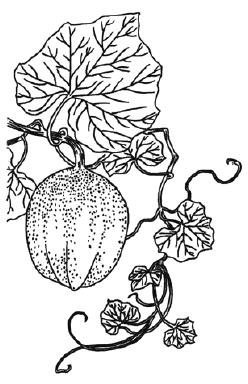 释义 | 古代名物 > 醫藥類(上) > 草部 > 莖葉花實 > 果臝 > 瓜蔞 瓜蔞 guālóu 即天瓜。出晉·皇甫謐《針灸甲乙經》。 瓜蒌 瓜蒌栝楼的别名。见明·李时珍《本草纲目·草七·栝楼》。 ☚ 白药 黄瓜 ☛ 栝楼【同义】总目录 黄瓜白药栝楼瓜蒌 瓜蒌fructus trichosanthis润肺化痰止咳药。出《神农本草经》。见《肘后备急方》。又名杜瓜,药瓜。为葫芦科植物栝楼Trichosanthes kirilowiiMaxim.的成熟果实(图1、2)。秋季果实成熟时,一并连果梗剪下,置阴凉通风处晾干,除去果梗,压扁。切丝或切块。生用。中国大部分地区均有分布。甘、苦,寒。入肺、胃、大肠经。功能清热化痰,润肺滑肠。主治: ❶肺热痰壅咳喘, 与知母、贝母、杏仁、桔梗等配伍。 图1 栝楼 图2 双边栝楼 瓜蒌药名。出《针灸甲乙经》。即栝楼。又名栝楼实、杜瓜、药瓜、全瓜蒌。为葫芦科植物栝楼Trichosanthes kirilowii Maxim. 或双边栝楼T. uniflora Hao等的果实。主产山东、安徽、河南等地。甘、苦,寒。入肺、胃、大肠经。清肺,化痰,宽胸散结,润肠。治痰热咳喘,肺痈,胸痹,结胸,乳痈肿痛,消渴,黄疸,便秘。煎服: 9~15g。反川乌、草乌。含三萜皂苷、蛋白质、有机酸、糖类、树脂等。还含氨基酸、生物碱。注射液对豚鼠离体心脏有增加冠脉流量的作用,并能增加小鼠耐缺氧的能力。对小鼠有镇静作用,并对小鼠肉瘤及腹水癌细胞有抑制作用。水提物使动物血糖先升后降,最后复原。在体外对金黄色葡萄球菌、肺炎球菌、链球菌、绿脓杆菌、流感杆菌等有抑制作用。 瓜蒌 瓜蒌为葫芦科多年生草质藤本植物括楼和双边括楼的成熟果实。全国均产。甘,寒。归肺、胃、大肠经。有清热化痰,散结消肿,润肠通便之功。主治下列病证: ☚ 旋覆花 贝母 ☛ 瓜蒌ɡuālóu中药名。出《神农本草经》。别名瓜蒌、全瓜蒌、药瓜。又作栝蒌。为葫芦科植物栝楼Trichosanthes kirilowiiMaxim. 或双边栝楼Trichosanthesrosthornii Harms 的成熟果实。我国大部分地区均产。主产于山东、安徽、河南。甘、苦, 寒。入肺、胃、大肠经。润肺化痰, 散结润肠。治痰热咳嗽、胸痹、结胸、乳痈肿痛、消渴、黄疸、便秘, 煎服: 9 ~ 15 克。反川乌、草乌。本品含栝楼酸、三萜皂苷、树脂、多种氨基酸及类生物碱等。注射液对豚鼠离体心脏有扩张冠脉、增加冠脉流量的作用, 并能增加小鼠耐缺氧的能力。对小鼠肉瘤和腹水癌有一定程度的抑制作用。在体外对金黄色葡萄球菌、肺炎球菌、链球菌、绿脓杆菌、流感杆菌等有抑制作用。 瓜蒌 瓜蒌Mongolian snakegourd (fruit) |