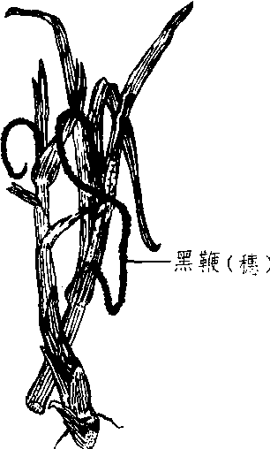 释义 | 甘蔗黑粉病sugarcane smut又称鞭黑穗病或黑穗病。甘蔗的一种重要真菌病害。病原菌是担子菌亚门的甘蔗鞭黑粉菌(Ustilago scitaminea Syd.)。发生于心叶梢头、侧芽或花轴上。蔗苗和蔗茎发病时,在心叶梢头上长出一条直立、稍弯或向下卷曲的黑(穗)鞭,为寄主薄壁组织和维管束组成的一条心柱,外面附着病菌冬孢子,表面有一层银白色薄膜,成熟时膜破裂,孢子随风飞散,最后只残留心柱。病株在未出现黑鞭前常萌发新芽,苗纤细,最初长出的节间极短,无可见的芽和初生根。随着病情发展,生长点及下面的细小侧枝相继产生黑(穗)鞭。病菌在种蔗、土壤和田间杂草上越冬。冬孢子借风雨、昆虫等传播。高温高湿或久旱转多雨有利于发病,连作加重。可选用抗病品种、轮作、不留宿根、使用健康蔗苗等防治措施。 甘蔗黑穗病症状 |
