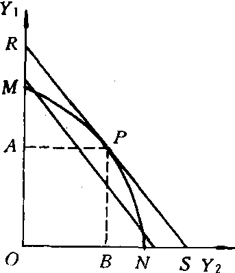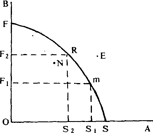 释义 | 生产可能性曲线production possibility curve又称等资源线。用一定量资源生产两种产品时形成各种可能的产量组合,在坐标图上连接各组合点形成的曲线。设Y1、Y2为两种产品,MN曲线即为生产可能性曲线。这一曲线表示线上任何一点所生产的不同产品数量的组合,其所用资源数量固定不变。同时亦表示在这个条件下两种产品的生产机会。一种产品产量的增加是以牺牲另一种产品的生产机会而获得的,故又称生产机会曲线。在同一生产可能曲线上,获得最大收益的两种产品的组合点是生产可能性曲线和等收益线RS相切的切点P。表明产品Y1的产量为OA,Y2的产量为OB时,能够取得最大收益的产品产量组合点,亦即各种产品边际收益相等之点。 生产可能性曲线 生产可能性曲线Production Possibility Curve见“产品转换曲线”。 生产可能性曲线见“生产可能性边界”。 生产可能性曲线 生产可能性曲线亦称“生产可能性边界”或称“转换曲线”。西方经济学家研究生产问题时所运用的一种分析工具,指在一定的技术和资源约束的条件下,各种产品可能达到的最大限度产量的不同组合的轨迹。人类生产首先面临的是资源,即各种生产要素的稀缺性问题,因此无论对于一个社会还是对于一个厂商而言,要增加某种商品的生产就必须放弃或减少别种商品生产,生产可能性曲线上的任何一点正是表示一个可供选择的生产最佳组合方式。图示如下: 图中,FS曲线就是生产可能性曲线,横轴A表示用一定投入可以生产商品A的数量,纵轴B表示用一定投入可以生产商品B的数量,如果把全部投入都用来生产商品A,则产量为OS,把全部投入都用来生产商品B,则产量为OF。如果同时生产两种商品,则可以选择多种组合方式,每一种组合方式都表示用既定数量的投入可以得到的产出。例如,R点表示一种生产可能性,生产OS2数量的商品A和OF2数量的商品B; m点表示另一种生产可能性,生产OS1数量的商品A和OF1数量的商品B。此外,生产可能性曲线还可说明资源使用存在潜力或过度问题。如果选择曲线以内的任何一点 (如N点)来进行生产,则说明现有资源未得到充分利用,还有潜力可挖; 如果选择曲线以外的任何一点 (如E点) 来进行生产,则现有资源和技术力所不及。因此,只有选择曲线上的任何一点来进行生产,才是既充分利用了生产资源又是生产资源所许可的。以上是一般情况下的生产可能性曲线,如果产品不能够无限细分,那么生产可能性曲线将不再是连续的平滑曲线而是折线。此外,生产可能性曲线也不是一成不变的,如果资源增加或技术进步,则生产可能性曲线向右上方移动,表明生产可能达到的更高产量。 ☚ 生态平衡 生产要素 ☛ |
