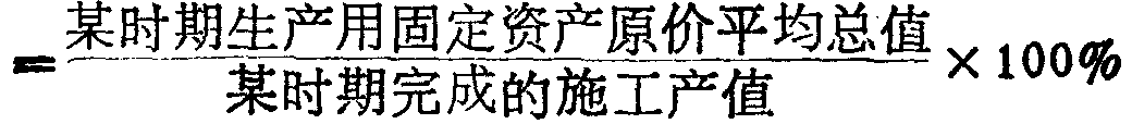 指施工企业某时期生产用固定资产原价平均总值与其同期完成的施工产值的比率。它是反映固定资金利用效果的一种指标。其计算公式为: