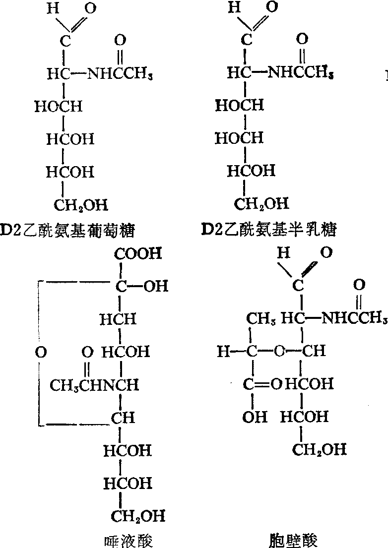 释义 | 生物体内的单糖及衍生单糖 生物体内的单糖及衍生单糖单糖及衍生单糖的异头羟基可以同醇、酚及单糖本身所含的羟基脱水缩合生成缩醛。这种连接键称为糖苷键。生物体内绝大部分单糖及衍生单糖均借糖苷键互相连接,构成生物体的重要组成。只有葡萄糖及果糖才有大量的以自由形式存在于自然界中。现仅择单糖及衍生单糖中的重要者,简述于后。 L阿拉伯糖是一些植物胶的组成成分,故可由阿拉伯胶、樱桃胶及其他一些植物胶经酸水解而获得。如果食用异常多的水果或果汁,尿中可出现阿拉伯糖; 这是饮食性戊糖尿的由来。 D木糖可从木胶的水解液中获得,是一些蛋白多糖的组成成分。食用大量樱桃、李、梅子或葡萄后,有时尿中也出现木糖。 D核糖是构成核糖核酸(RNA) 的一种要素,在体内可由葡萄糖转变而来。 L木酮糖是体内抗坏血酸及葡萄糖醛酸代谢中的一种中间产物,故在缺乏木酮糖脱氢酶的遗传性疾病中,尿中出现木酮糖。 D核酮糖在体内糖代谢中,甚为重要; 5磷酸核酮糖是磷酸葡萄糖酸支路中的一种中间产物。 己糖 己糖是自然界中最多的一类糖,其绝大部分是以结合形式存在。己醛糖中的重要者有葡萄糖、半乳糖及甘露糖等,而己酮糖中则有果糖。 顾名思义,可以断定D葡萄糖的来源之一是葡萄。葡萄糖又名右旋糖,广泛存在于水果及蔬菜中,往往与自身或其他单糖结合成为寡糖或多糖,是常见一些双糖的共同组成成分,还是人及一些动物血液中主要的糖。正常健康人血液中葡萄糖含量,空腹时每100ml血液约含80~120mg,饭后略有升高。血液中的葡萄糖是供给各种组织活动所需能量的物质。 D半乳糖很少以自由形式存在于自然界中,但以结合形式存在于动、植物界中。一分子半乳糖与一分子葡萄糖构成乳糖,因此得名。许多个半乳糖分子可缩合成半乳聚糖,琼脂的主要成分就是一种半乳聚糖。半乳糖还是一些糖蛋白及糖脂的一种组成成分。 D甘露糖极少自由存在于自然界中。橡扣树及某些果壳内所含的多糖,即是甘露聚糖。甘露糖也是多种糖蛋白的组成成分。 D果糖是一种酮糖,旋转偏振光面向左,故又名左旋糖,是糖类物质中的最甜者,在水果中自由存在,因而得名。一分子果糖与一分子葡萄糖通过其两个潜伏羰基的缩合,构成日常食用的蔗糖。果糖的一种多聚物是菊粉,广布于大丽花的块茎、耶路撒冷蓟及蒲公英等的根,以及葱、蒜等的球茎中。果糖与葡萄糖相比更为活泼; 它的各种磷酸酯是体内糖代谢中的重要中间产物。 脱氧糖 脱氧糖是单糖分子中的羟基为氢所取代者,以D2脱氧核糖及L岩藻糖最为常见。 D脱氧核糖作为脱氧核糖核酸的组成成分,广泛存在于各种生物体内。岩藻糖是自然界中少数几种L型单糖之一,普遍存在于动、植物中,是构成一些糖蛋白及糖脂的一种要素。 氨基糖 单糖分子中的羟基为一氨基取代者,称为氨基糖。自然界中广泛存在的氨基糖主要是D2氨基己醛糖,即D2氨基葡萄糖及D2氨基半乳糖。一类名为唾液酸的有九个碳原子碳链的氨基糖普遍存在于细菌及动物组织中。此外还有N乙酰氨基葡萄糖的一种衍生物名为胞壁酸的也常见于细菌中。它们都是以结合形式存在,而且通常是以N乙酰衍生物出现于相应的结合物中。 氨基葡萄糖是许多昆虫、甲壳动物及某些真菌中壳多糖的水解产物,也是构成哺乳动物种种多糖及糖蛋白的一种要素。氨基半乳糖可在硫酸软骨质 (软骨中一类蛋白多糖)、一些糖蛋白及一些糖神经鞘脂中发现。 唾液酸是一类单糖衍生物,可看作是由丙酮酸与N乙酰氨基甘露糖经醇醛缩合而成的; 实际上自然界中在酶的作用下,它的生成确是如此。唾液酸也可以看作是神经氨酸的乙酰化产物。乙酰化主要是在氨基上进行。乙酰基有时可为羟乙酰所取代,在猪、马及牛等的一些糖蛋白中就是如此。乙酰化还可在分子中4、7或8位羟基上进行,也可在这三个羟基中的两个或三个同时进行,所以常发现4、7或8单O乙酰、二O乙酰及三O乙酰唾液酸。自然界中唾液酸种类虽然多,但最常见者还是N乙酰神经氨酸。 胞壁酸也是一个含九个碳原子的N乙酰氨基糖,但其碳原子并不都连接在一起,可看作是N乙酰氨基葡萄糖与乳酸的缩合产物。但是,在自然界中它是活化的N乙酰氨基葡萄糖,在烯醇丙酮酸转移酶的作用下,与磷酸烯醇式丙酮酸缩合生成,是构成某些细菌胞壁的要素。糖酸 最常见的糖酸均从醛糖氧化而来。氧化可在分子中C—1或C—6上进行,或也可在二者上同时进行,将醛基或伯醇基氧化成羧基,所以它们有的是醛糖糖酸,有的是糖醛酸,还有的是醛糖糖二酸。它们都形成内酯或糖的环状结构。 以葡萄糖为例,它可氧化成葡萄糖糖酸、葡萄糖醛酸或葡萄糖糖二酸; 其中以前二者最为重要。葡萄糖糖酸是一种无毒物质,易进入体内的代谢途径,故常用以引起阳离子的物质,特别是引起钙离子的物质。葡萄糖醛酸可在体内生成,仍具有潜伏醛基,能借糖苷键与多种含 羟基 (如酚及类固醇等) 及羧基(如苯甲酸等)的化合物形成溶解度较大的物质,以便从尿中排出,实际是体内的一种解毒剂。葡萄糖醛酸还是构成一些蛋白多糖的一种要素; 在体内酶的作用下,可转变为艾杜糖醛酸。艾杜醛酸在硫酸肤质中取代了葡萄糖醛。此外,抗坏血酸也算是一种糖酸,在许多种生物体内,可由葡萄糖醛酸生成; 但在人、猿猴及豚鼠等体内,这种