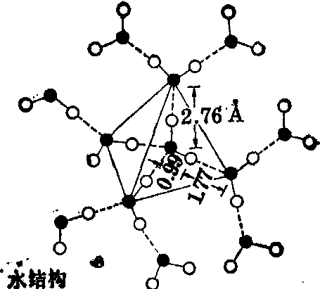 释义 | 生物体系中的水结构 生物体系中的水结构生命现象不能离开水而存在。机体中不仅到处都有液体状态的水,而且还有按一定规律彼此结合,并和生物大分子相互结合的水,这种具有一定结构的水称为水结构。它是由水分子所特有的性质所决定的,并在生命过程中起着重要作用。 图1 单个水分子的四面体结构 水分子中电子云的这种排布使整个水分子内的正负电荷分离: 其中O原子附近有较多的负电荷,H原子附近有较多的正电荷。因此水分子是一种极性分子,具有永久偶极矩,其值为1.84D (D为偶极矩单位Debye) 当两个水分子相互接近时,一个分子的O原子与另一个分子的H原子之间可以通过氢键相互连结,每个水分子可以分别和另外四个水分子以氢键联系,形成图2所示的空间结构。水在结冰时就具有这种结构。用X射线衍射技术可测出同一分子中O与H之间的距离为0.99A,形成H键的H与O原子的间距为 1.77Å, 因此冰中每两个相邻O原子之间的距离为 图2 水分子之间的相互连结关系(●为氧原子,○为氢原子) 2.76Å。 当冰融化为水时,大部份氢键被破坏,但相邻水分子之间仍有一定的氢键联系。对水的X射线衍射研究表明,在10Å范围内,水仍具有结构,图3表示不同距离处的电子密度分布。图中峰所在位置相当于最接近的几个O原子之间的距离,而在10Å以外就不再出现峰。 这证明, 尽管水是液体,其中局部区域仍然存在着由几个分子连接而成的微小晶体,因此水也有一定的结构或有序性。图3 液态水的径向密度分布 水化作用 溶解于水中的各种物质常能使水的物理性质与结构发生变化。例如阳离子由于带正电,将使极性的水分子沿着离子所造成的电场排列,在离子周围就形成了结合较紧密、有序性很高的水层,称为原初水化层(Ⅰ区)。远离该离子的为Ⅲ区,离子的电场实际上已无影响,该区的水呈正常的结构。介于Ⅰ、Ⅲ两区间的为Ⅱ区,其中水分子经常受到这两个有序区中水分子的影响并与其不断进行交换,因此Ⅱ区中的水有序性最差。由于离子的存在使水的有序性降低,所以溶液的热容量减小。离子浓度越大,则溶液的热容量越小(图4)。 图4 阳离子水化的示意图 与此相反,具有疏水基团的非极性物质将使溶液的热容量增大,其与水分子的相互作用使水的有序性加强。现已肯定,在许多情况下,非极性分子周围的水分子能形成笼形结构,如图5所示。这种情况相当于非极性分子在水中形成空穴。 图5 水的笼形结构 水结构的生物学意义 处于水环境中的生物大分子由于本身具有各种不同类型的基团,显然将对水产生不同的影响。例如蛋白质具有疏水与亲水二种氨基酸侧链,蛋白质分子表面的带电基团将和阳离子产生类似的水化作用,而从蛋白质表面伸展出来的疏水侧链则将在水中产生空穴。一般来说,蛋白质的疏水侧链常位于蛋白质结构内部,而极性氨基酸则位于表面,这是因为亲水基团与水的相互作用比疏水基团的作用强得多。这样就使蛋白质的表面与其内部具有不同的物理性质。对于脂双层来说也是如此,脂双层中的烃链位于膜的内部,而极性带电基团则位于外部与水强烈作用。 由于上述原因,大分子或双层脂膜的外表面常能形成一层有结构的水(也称结合水),由于相互作用很强,这一层水常和大分子或膜成为一个整体,并与其一起活动,成为一个较大的流体动力学单位。对于组织与细胞来说也是如此。组织中既有自由水,也有结合水。应用核磁共振技术可以测定自由水与结合水具有不同的弛豫时间。肿瘤组织与正常组织中自由水与结合水的比例不同,由此可以测出肿瘤组织与正常组织的区别(见“核磁共振”条)。水结构还能从客观水平影响生物学行为,Pauling曾指出,许多全身麻醉药物并不具有很高的化学活性,例如CHCl3、N2O、CO2、C2H4、C3H6、SF6、N2、Ar、Xe等,而且在它们之间也很难发现在化学性质上有什么共同性。但从物理学的观点看,它们都能改变神经细胞附近的水结构,从而破坏神经传导所必需的正常离子流。X射线衍射技术已经证明Xe、CHCl3等周围能形成笼形水结构,并测定出每个Xe原子或CHCl3分子分别结合了51/4与17个水分子。在形成笼形水结构时水的体积膨胀。可以设想,能阻碍水结构形成的任何因素都将使麻醉效果减弱。压力就是这类因素之一。实验已经证明,加压确能降低麻醉效果。 ☚ 分子生物物理 生物大分子的激发态 ☛ |
