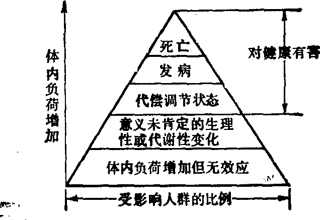 生物反应谱示意图 任何一种环境污染物或其它有害因子引起的健康效应,在任何一个人群中往往呈现金字塔形的分布。这种金字塔形分布的顶端到达何种水平,视环境作用强度与人群中各个体的抵抗力、适应力而定。在一般情况下,当环境污染严重和环境有害因素作用极强时,可引起“环境病”的流行,并有少数死亡。 生物反应谱反映了环境作用强度与人群反应关系的动态变化。此种生物反应谱是环境卫生学的一个很重要的概念,也指出了环境卫生学应面向整体人群作调查研究,查清各种水平的健康受损者以及出现率,能科学地解释环境危害的性质、程度与范围,制订正确的防治措施。 ☚ 接触—效应关系和接触—反应关系 高危险人群 ☛ |