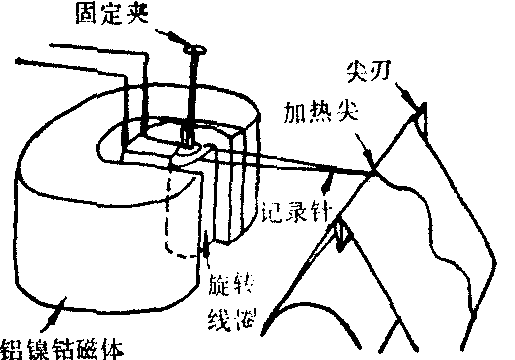 释义 | 生理信号的记录与显示 生理信号的记录与显示生理信号的记录与显示是生物医学测量中的重要组成部分。生理信号如心电、心音、脑电、肌电、神经电位、电压、胃肠内压等最终均以一定的方式记录或显示出来,根据波形的形状及其随时间变化的规律,医生可以分析、判断病症或生理变化,利用磁记录技术能记录较长时间信息的特征,还可以记录到如心室早搏等偶发性疾病,为医生追踪病人发生过的情况提供了依据。 图1 笔描记录装置 生反作用力矩,当电磁转动力矩与游丝的反作用力矩相等时,测量机构的转动部分达到平衡状态,描笔指在某一位置。当磁钢的工作磁场强度、动圈尺寸和匝数确定后,动圈的转角,即描笔笔尖的机械位移与流经动圈的电流成正比,因此描笔描绘的轨迹反映了待测电流的变化。当转动机构以一定速度带动记录纸运动时,描笔在记录纸上描记的就是被测信号随时间变化的波形。图1中描笔亦可代之以喷头或光束,从而得到不同的描记方式。用墨水笔或热笔描记的称为笔描记录器,用喷墨水方式描记的称喷水记录器,用光束在光敏纸上描记的称为光线示波器。 (1) 笔描记录器: 是最早和最为广泛采用的一种记录器,具有结构简单、工作寿命长、记录材料价格低廉、记录结果易于保存等优点,其缺点是描笔的重量和受到的磨擦阻力较大。早期的笔描记录器工作在开环方式,工作频率较低,约为0~50Hz以下,记录的波形失真严重。六十年代末,笔描记录器中引入了速度反馈技术,使动态特性有了很大的提高,频率响应可达100Hz,满足了大部分生理信号记录的要求; 但它的功耗较大,使描笔的转动力矩的增加受到了限制,导致回零特性和小信号响应较差。七十年代,又引入了位置反馈技术,它不仅具有速度反馈的优点,同时功耗小,力矩大,克服了速度反馈的不足,也使仪器的小型化成为可能。目前笔描记录器已广泛用于如心电、脑电、脉波、呼吸波等生理信号的记录。 ❶速度反馈笔描记录器: 速度反馈笔描记录器是在开环工作的笔描记录器中引入速度反馈信号而闭环工作的记录器。图2为一种具有速度反馈的记录器电路。L1是测量机构的动圈,L2是在动圈上加绕的阻尼线圈。当动圈偏转时阻尼线圈L2中将产生感应电势并反馈至放大器的输入端,感应电势的大小和动圈的转动角速度成正比。因此采用速度反馈时,动圈L1中的电流除了信号电流外,还有L2检测到的与动圈转动角速度成正比的感应电流,只要适当的调整速度反馈量大小,就可获得合适的阻尼特性; ❷位置反馈笔描记录器: 位置反馈笔描记录器是在开环工作的笔描记录器的测量机构上,附加了一个动圈角度位置检出器,用以检测与动圈偏转角度成正比的位置信号并负反馈至放大器的输入端,如图3所示。当信号电流与反馈电流相等时,描笔就指在某一位置,此时动圈内电流近似为零,不消耗功率。当信号电流变化时,描 图2 速度负反馈电路原理 图3 位置反馈原理 笔偏转,致使反馈电流相应变化,达到新的平衡。因此在位置反馈笔描记录器中,用位置检出器构成的反馈系统取代了游丝,描笔处于随遇平衡之中,使功耗大为降低。此外,调节位置反馈电路的参数,可以在合适的阻尼条件下,得到足够大的等效刚度,有利于提高频响,减小记录描笔和记录材料摩擦引起的误差。笔描记录器的描笔,有的采用直接书写式的墨水笔,也有的采用热笔。描笔偏转时,墨水笔记录的是弧线,因此不仅产生了随转角增大而增大的时间偏差,也产生了笔尖偏移量与偏移角正弦成正比的弧差。为此往往采用直线化机构,使记录的弧线转化成直线,这样就消除了弧差,但却增大了描笔的转动惯量。热笔记录需用热敏纸,热敏纸在热笔的刀刃下移动,因受热而留下痕迹。 (2) 喷水记录器: 喷水记录器是利用特殊墨水通过喷笔喷射到记录纸上进行记录。喷笔的运动原理和笔描记录器相同。由于用喷水方式代替记录描笔,转动惯量较小,且没有摩擦,因此频率响应较高。但喷水的射程受频率影响,且喷笔内径很细,易堵塞,加之喷水笔的喷水散裂和时滞效应,会产生记录线条变粗、波形失真等现象,实际中采用较少。 (3)光线示波器: 光线示波器是利用光束在光敏材料上留下痕迹的一种记录装置。其运动原理和笔描记录器相同,但此时和动圈相连的不是描笔而是反射镜,光束射到反射镜上并反射至光敏材料,信号使动圈连同反射镜一起转动,反射光束也就随镜片的偏转而偏转,并在光敏材料上留下痕迹。光线示波器的工作频率可高达数kHz。由于光束互不干扰,光程可较长,相当于放大倍数大,因此光线示波器尤适合宽幅度、多路信号的同时记录。光线示波器可用白炽灯作光源,此时需用摄影胶卷或直接感光纸作记录材料。它也可用超高压汞灯作光源,记录材料采用银盐乳剂制成的紫外线感光纸。所以光线示波器的记录材料较为昂贵,有时需暗室操作,这是其缺点。 磁带记录器 磁记录用于生理信号的技术是七十年代发展起来的。采用对信号的预处理,可记录直流到兆周的信号,能满足全部生理信号的要求。磁记录密度高,容量大,可用于病人的长期监测,扩大了仪器的功能。由于以电磁的形式存贮和输出信号,重放时需其它的显示装置。 磁带记录器是利用磁性材料的剩磁效应写入、存贮、读出信息的装置,它由磁头、信号输入、输出电路和磁带传动