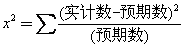 因此通过对χ2值的计算,就能以一定的概率推断在理论数与实计数之间的吻合度。表4中ρ为概率,v为自由度。在遗传学的实用例中,自由度一般等于类别数减去一。例如有人调查了1279人的三种类型MN抗原的人数分布如下: nMM 363人——(实计数)1 nMN 634人——(实计数)2 nNN 282人——(实计数)3 n总 1279人 在共显性遗传,并且遗传受一对基因控制的理论假设下,M和N基因频率的估计量p和q分别为: 在群体已达Hardy-Weinberg平衡的理想假设下,以上三数类型的预计人数应为n(p+q)2的展开项,他们依次为: np2=1279 (0.532) 2=361人——(预期数)1 2npq=2 (1279)(0.532)(0.468)=637人——(预期数)2 nq2=1279 (0.468)2=280人——(预期数)3于是用计算x2的公式算出: ☚ 发生遗传学 群体遗传学 ☛ |