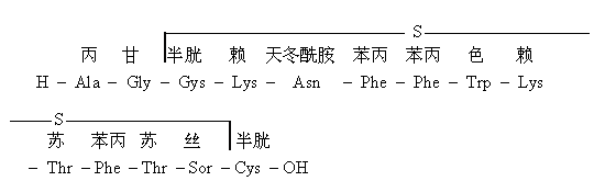 生长素抑制激素(somatostatin,GH-RIF,GRIF)是从下丘脑中提取所得的一个激素,能抑制生长素的释放。它的初级结构为14肽。羊或猪的GRIF结构式如上。GRIF不但存在于下丘脑中,也存在于胃、肠、胰岛等脏器中。它对脑垂体的作用除了能抑制生长素释放,还能抑制促甲状腺素、胰岛素、胰高糖素释放。在胃、肠内能抑制胃泌素、胰泌素、缩胆促胰素等的分泌。因而认为它不但控制脑垂体的分泌,又能调节胰、十二指肠、及胃的功能。它在局部发挥作用是属于非循环性的活性肽。GRIF可用于治疗糖尿病、及胰岛α-细胞瘤、肢端肥大症,与胰岛素合用可治疗幼年性糖尿病。GRIF的多功能抑制作用和它在体内短暂的半寿期限制了它的临床应用。已合成了许多专一性强的衍生物。[D-Trp5]-GH-RIH抑制生长素活力比天然品高6~8倍。对抑制胃酸分泌的作用较弱。[D-Try