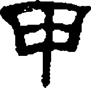 【提示】中间一横宋体与左右两边相接,楷体与左右两边相离。 *甲jiǎ5画 丨部 (1) 天干的第一位: ~子年。 (2) 居第一位;第一: ~级|~组|桂林山水~天下。 (3) 动物身上起保护作用的硬壳: ~虫|龟~。 (4) 手指和脚趾上的角质硬壳: 指~。 (5) 古代军人作战时的护身服: 盔~。 (6) 用金属制成的有保护功用的装备: ~板|装~车。 (7) 旧时的一种户口编制单位,若干户为一甲,每甲设甲长。 甲 ☚ 甲部 乙部 ☛ 甲jiǎ甲骨文至周代金文作“十”字形。当时数字“十”只作一竖,与甲字作“十”完全可以区别。七字也作“十”字形,但横笔较长。甲骨文中对商王先公上甲的甲字“十”外加方框,四边与四头不接触,与田地的田字不同。西周时个别甲字与此同。甲字大约象田地划分形。乙字象流水,甲骨文水字旁常作乙字旁。到战国末,小篆把甲字的方框改写成一圆形,下边开口,中间的一竖拉下并伸出去。后来小篆发生讹变。隶楷又变成方框,不过中间一竖仍伸出去。“甲”指天干的第一位。如:甲子。引申为居首位的。如:甲天下。又指盔甲,引申为动物的硬壳。如:龟甲|甲虫。又指手指或脚趾上的角质硬壳。如:指甲。现代又指用金属制成的有保护功用的装备。如:装甲汽车。组词如:甲板(指轮船上的)。 甲★常◎常