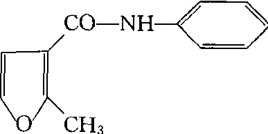甲呋酰苯胺fenfuram杂环类杀菌剂。化学名称:2-甲基呋喃-3-甲酰替苯胺。化学结构式如下。原药为乳白色固体,熔点109~110℃,溶解度水中为98 mg/kg,甲醇中为145 g/L,丙酮中为320 g/L,环己酮中340g/L。对光、热稳定,在75℃条件下贮存100 h,分解率为1.4%,内吸性杀菌剂。主要用于禾谷类作物种子处理,防治大、小麦散黑穗病,小麦腥黑穗病,高粱丝黑穗病,散黑穗病,坚黑穗病,谷子粒黑穗病;对玉米丝黑穗病效果差。对人畜低毒,大鼠急性口服LD5012 900 mg/kg。对皮肤有轻度刺激,对眼睛有严重刺激作用,对鱼类毒性较低。