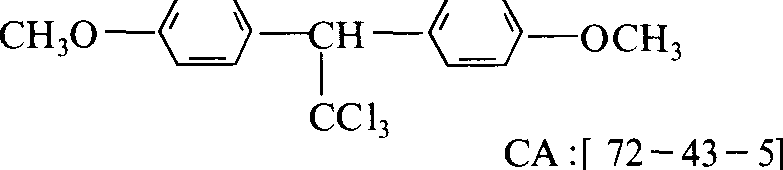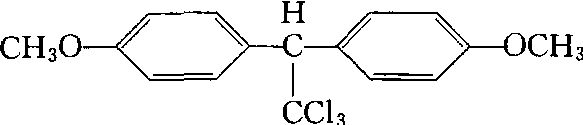 释义 | 甲氧滴滴涕methoxychlor一种非稳定型无累积作用的有机氯杀虫剂。化学结构式: 工业品为灰白色片状固体,含p,p′-异构体约88%,其余大部分为o,p′ -异构体,凝固点为77℃,纯p,p′-异构体为无色结晶,熔点89℃,具有水果香气味,难溶于水,微溶于乙醇和石油,易溶于芳香族溶剂,耐热抗氧化。在哺乳动物体内不易积累或分泌到乳汁中去,可被代谢成无毒物排出体外。对人、畜安全,大白鼠急性口服LD50为6000毫克/千克。具有触杀和胃毒作用,无内吸和熏蒸作用,杀虫范围与滴滴涕相似,但效果较滴滴涕差。主要用于大田作物、果树、蔬菜防治玉米螟、造桥虫、豆甲、豌豆象、果树实心虫、苹果蠹蛾、日本金龟甲、小象甲、天幕毛虫、实蝇、叶蝉、蝽象、蔬菜叶跳甲、菜螟、黄守瓜、种蝇等。还用于防治卫生害虫和家畜体外寄生虫等。 甲氧滴滴涕methoxychlor广谱有机氯杀虫剂。化学名称:2,2-双(对甲氧苯基)-1,1,1-三氯乙烷。化学结构式如下。工业品为灰白色的鳞状粉末,具有水果香味,凝固点77℃,密度1.41,不溶于水,溶于乙醇和烃类溶剂,易溶于芳族溶剂。工业品有对、对位和邻、对位二种异构体。对、对位异构体约占88%,为无色结晶,熔点89℃。具有触杀和胃毒作用,对蚜、螨类的效果较差。与滴滴涕杀虫谱相同。亦用于家畜体外寄生虫。大鼠急性口服LD50为6 000 mg/kg,兔经皮LD50>6 000 mg/kg。甲氧滴滴涕不会在动物体内积累,造成慢性毒害。对鱼类高毒。 |