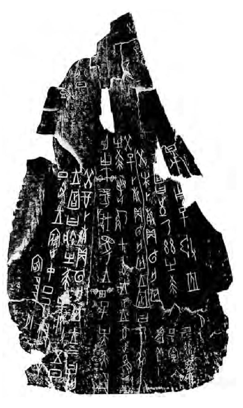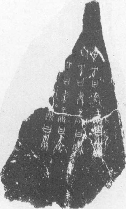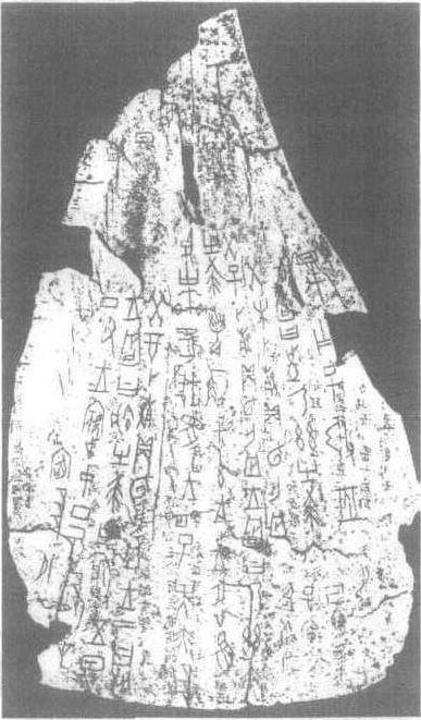 甲骨文inscriptions on bones or tortoises shells of the Shang Dynasty 甲骨文oracle bone inscriptions 甲骨文刻在龟甲或兽骨上用于记录占卜活动内容的文字,又称贞卜文字、甲骨刻辞、殷墟书契等。早在十九世纪末期,河南安阳小屯村的农民在翻耕土地时便不断发现甲骨,并当作中药材“龙骨”使用。1899年清朝国子监祭酒王懿荣首次确定它的文字价值,进而研究确定是商代占卜用的甲骨。后经王襄、罗振玉等学者研究,揭开了甲骨的奥秘,找到了殷墟。目前已发现甲骨十五万片以上,有不相重复的单字四千五百个左右。每个甲骨文单字基本上由长短线条互相配合的点划组成,形体呈方块或长方块。从汉字结构的规律上看,甲骨文以象形、形声和假借字为主,这些表明它是一种比较成熟的文字,堪称中国汉字的鼻祖。甲骨文与古代两河流域苏美尔人的楔形文字,腓尼基字母并称人类三大古文字。经过八十多年来中外学者的共同努力,现已能辨认一千多个单字,从而为我们了解当时社会,特别是商代社会提供了许多有价值的资料。如甲骨文中有世界最早的关于日食和月食的记录,有世界最早的医疗档案,有完整的十进位制数字系统。根据考古发掘,早在原始社会末期已有甲骨文,主要盛行于商代,西周时渐为金文所代替。除殷墟外,河南郑州二里岗、山西洪赵坊堆村、陕西长安张家坡和花园村,岐山凤雏村、扶风齐家村以及北京昌平白浮村也都有甲骨文出土。(参考图75) 甲骨文一種金石文。即殷商時刻於龜甲獸骨卜卦文字,為現存中國文字之最古者。亦曰“龜甲獸骨文”、“龜版文”、“殷墟文”、“貞卜文”以及“卜辭”、“契文”等。先以刀刻於龜甲或獸骨之表,復以火燒,觀其變化,藉以卜算事物之凶吉、當否等。 [龜甲之發現] 清·光緒二十五年 (1899),河南安陽縣小屯河岸出土刻有文字之龜甲及獸骨,此地(據《史記·項羽本紀》)當為殷都故址,經學者考定,確認為殷商文字。凡此甲骨片初歸王懿榮收藏,其後王氏於“義和團運動”中殉難,其藏品盡歸丹徒劉鹗之手。劉氏繼續全力搜集,至光緒二十九年(1903)已達五千餘片。即從中擇選一千零五十八片拓墨上石, 薈萃成册, 名曰 《鐵雲藏龜》, 實係甲骨文字著録之嚆矢。自此,甲骨文字流傳人間,頗為學術界、書法金石界注目,紛紛搜訪研究。士人又不斷發掘,遂出土甲骨文多達數萬片,一時出現 “甲骨熱”。民國十七年(1928)國立中央研究院歷史語言研究所組織大規模發掘,甲骨文始為正式學術研究,先後發掘十五次。又在陝西省周原地區、山西洪趙坊堆村發現一批周人的甲骨文,現約有十餘萬片之教,分藏於國内各大博物館和日本、美國哈佛大學諸地。甲骨文發掘之結果,多發表於大型專輯《安陽發掘報告》、《小屯·殷墟文字甲乙编》中。