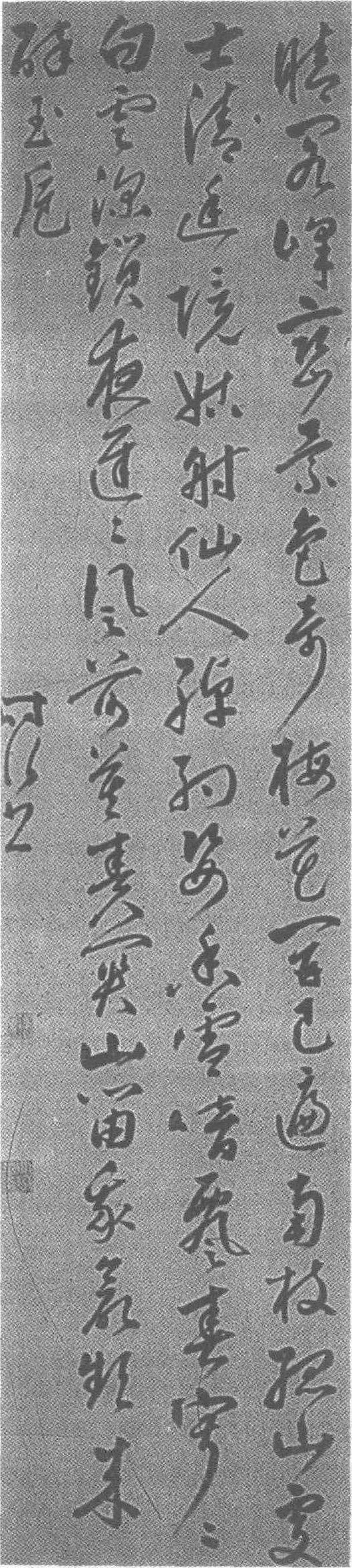 释义 | 申时行草书七言律诗轴 申时行草书七言律诗轴明。纸本。纵186.2厘米,横39.6厘米。上海博物馆藏。申时行(嘉靖十四年—万历二十四年,即公元1535—1614年),字汝默,号瑶泉,晚号休休居士,长洲(今江苏省苏州)人。嘉靖四十一年,即公元1562年进士第一,授修撰,历左庶子,掌翰林院事。万历五年,即公元1577年,由礼部侍郎改吏部,以文字受知张居正,官吏部尚书。卒谥文定。诗文词藻流丽婉转。明叶向高《苍霞草》:“文定善真、行、草书,有《赐闲堂帖》行世。”明过庭训《分省人物考》云:“时行廷试时,上见其词翰兼美,亲擢第一。”著有《赐闲堂集》。《明史》卷二百十八有传。此幅草书七言律诗:“晴阁峰峦景色奇,梅花开已遍南枝,孤山处士清幽境,姑射仙人绰约姿。香雪暗飘春寂寂,白雪深锁夜迟迟,风前莫奏关山笛,我欲频来醉玉卮。”款署“时行书”。首钤朱文<崇纶堂>长方印,款下钤白文<瑶泉>、<大学士印>两方印。用笔以圆厚为主,婉转浑凝,结字平稳疏朗,姿态秀逸,给人以自然清雅洒脱之感。 ☚ 莫是龙行书识语轴 祝世禄草书五言绝句 ☛ |