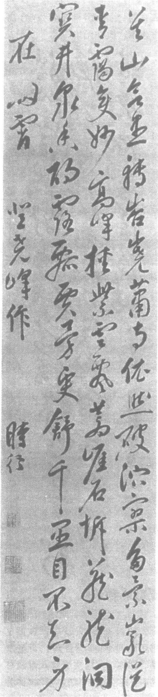 释义 | 申时行行草书登尧峰诗轴 申时行行草书登尧峰诗轴明。纸本。纵137.5厘米,横30厘米。江苏省苏州博物馆藏。申时行(见《申时行草书七言律诗轴》条目)书。“尧峰山”在苏城西南,横山西起之最高峰。传说尧时洪水泛滥,吴人避居于此,故得名。山中有清辉轩、碧玉沼、多景岩、宝云井、白龙洞、观音岩、偃盖松、妙高峰、东斋、西隐等十景。此诗是作者登尧峰山时作“吴山欲尽转岧峣,萧寺依然破泬寥。多景岩从青霭变,妙高峰挟紫云瓢。苍崖石坼藏龙洞,宝井泉香酌露飘。贾勇更舒千里目,不知身□在□霄”。款署:“登尧峰作,时行”。行草书体深得二王之书风,字体多颀长魁伟,行笔悠然自得,使转轻捷灵妙,柔中寓刚,笔致流畅生动,清秀雅洁,静动结合,给人以自然清雅之气息。 ☚ 王穉登行草书七言律诗册 邢慈静行草书临王羲之书 ☛ |