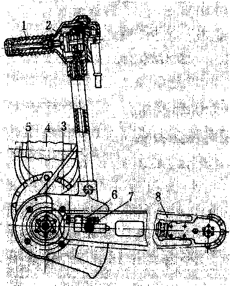 M2L2-950型电锯 1.电缆接头; 2.开关; 3.减速箱; 4.手柄; 5.电动机; 6.调节螺钉; 7.调节滑块; 8.锯木机构 电动链锯electric chain saw简称电锯。以电动机为动力的手持式横截链锯。主要用于贮木场造材作业和各种木工作业。电锯由电动机、传动机构(减速器、装有摩擦离合器、电磁离合器)、锯木机构(驱动链轮、锯链、锯导板、张紧装置等)和操纵装置(手柄、开关、电缆、连接器)等部件组成。按电源性质电锯有三相工频电锯、三相中频电锯、单相电锯和直流电锯等类型。电动机相应采用三相异步鼠笼式电动机、单相整流子电动机和永磁直流电动机,功率一般在1~3 kW之间。与油锯相比,电锯结构简单,保养方便,起动容易,工作可靠,振动和噪声较小,在有电源的贮木场和木工作业等场所应用较广泛。 电动链锯由电动机驱动锯链进行切削作业的机械,简称电锯。电锯20世纪30年代开始出现,50年代广泛应用。中国于1954年引进电锯,1957年开始生产M2L2—950型电锯。电锯由电动机、减速箱、锯木机构等3部分构成。按电源分为单相电锯、三相2频电锯、三相中频电锯和直流电锯4类。多数电锯重量为8~10 kg,功率3 kW以下。 |