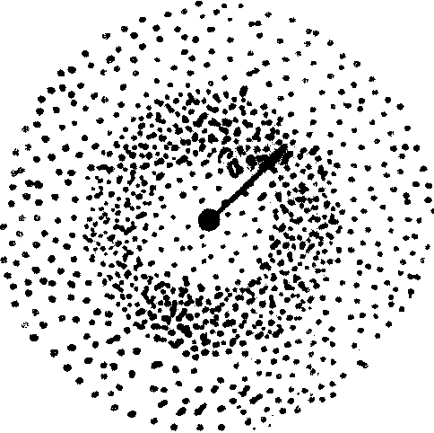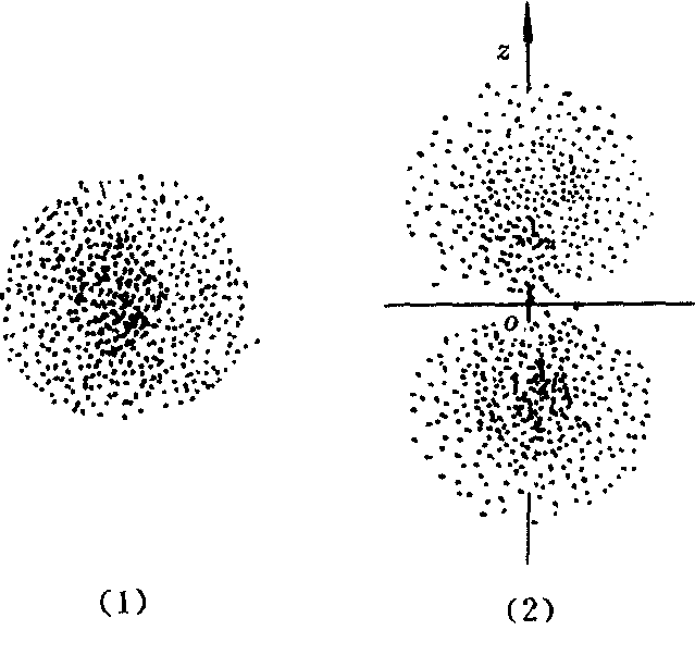 电子并不真的象云那样分散,不再是一个粒子,而是电子运动具有统计性的一种形象的描述,说明核外电子并不是在固定轨道上运动,而是核外各个空间都可出现,并且各处出现的机会也不一样,随离核距离r增大而减小,呈不均匀分布。核附近出现的几率密度大,离核越远几率密度越小。核外电子有不同的空间运动状态,有不同的波函数,就有不同的几率密度分布,就有不同形状的电子云。电子云是原子结构中的基本概念,在讨论共价分子的几何构型时很有用。 ☚ 波函数图象 电子云图象 ☛ 电子云 电子云dianziyun描述原子或分子中电子的概率密度在核外空间中分布的图象。按照量子力学的理论,电子可以在核外的任何地方出现,无所谓确定的轨道,而只能说电子出现在周围空间各处的概率是多少。原子处于不同的能量状态,其核外电子的概率密度有不同的分布。为直观起见,我们用小黑点的密集程度表示概率的大小,其状如云雾,故称作电子云。这样,在电子云最密的地方,电子出现的机会最多,而在电子云最稀的地方,出现机会最少。下图为氢原子处于基态时的电子云。其中电子最频繁地出现在半径为a0的球壳上,a0即为玻尔第一轨道半径。由此可见,所谓原子的大小,并不是原子的几何尺寸,也不是电子绕核运动轨道的大小,而是电子出现概率最大的空间区域。 ☚ 薛定谔方程 电子的自旋 ☛ 电子云electron cloud电子在核外空间一定范围内出现,如同带负电荷的云雾笼罩在原子核周围,此种现象叫电子云。其形成是电子在原子内做高速运动,且无确定轨道,故围绕核外出现机率多少不一,综观如云,故名。在医学科学研究中有意义。 电子云描写原子或分子中电子在原子核外空间出现的几率密度分布的形象化表示法。电子云常用黑点图或界面图加以表示,黑点的稠密与稀疏就表示电子出现几率密度的大小,看上去就象是带负电的云雾分布在原子核的周围,故称电子云。 电子云electron (/electronic) cloud 电子云electron cloud |