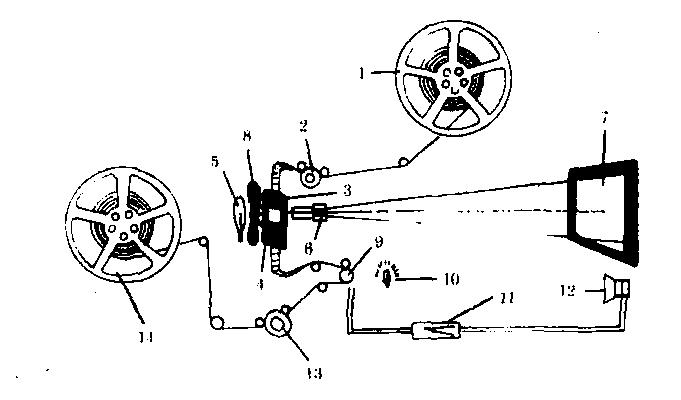 释义 | ![]() ![]() ![]() ![]() ![]() 电影机 电影机Dianyingji用来放映电影的机器。图是它的示意图。它的基本原理大致和幻灯机相似。电影机放映影片就相当于一部幻灯机在很快地自动更换幻灯片,每秒钟内经过放映机镜头的影片画面有24幅。影片画面是由电影摄影机以每秒24张的速度连续拍摄下来的, 这相当于把每一个连续的动作都分解成了多个部位不同的画面。当放映电影时,让画面以与拍摄时同样的速度依次经过电影机镜头, 使所拍摄的动作重现在银幕上。在电影机里有一个遮光器,当一幅画面对准镜头时,让光通过镜头,这时就在银幕上成一个该画面的实像。当更换画面时,把光遮住,不让画面接头的地方呈现在银幕上。每个画面在银幕上大约停留0.04秒的时间,更换画面时银幕上黑暗的时间大约是0.01秒。人们在看电影时,觉得银幕上的动作是连续的,没有间歇跳跃的感觉, 这是因为眼睛在看物体的时候,眼睛里就有了这个物体的象, 在物体移去后,视神经对它的印象不会立即消失,而要延续大约1/12-1/16秒的时间,这种性质叫做眼睛的视觉暂留。所以在看电影时,尽管银幕上出现的画面是断续的,但由于画面更换得很快,它给人的感觉仍然是连续的。如果用高速摄影机 (如1 000幅/秒)拍摄运动物体或运动员的动作,再以正常速度(24幅/秒)放映,将得到变化十分缓慢的画面,可以清楚地看到动作的细节。在科学研究中经常用这种方法研究高速运动的物体。反之,如果采用延时、定时拍摄的方法,又可以把在很长时间内才能观察到的变化过程,在很短时间内再现出来。例如利用电影表现植物的发芽、生长、开花、结果等。 1. 供片夹 2. 输片齿轮 3. 片门 4. 抓片齿 5. 光源 6. 放映镜头 7. 银幕 8. 遮光器 9. 音鼓 10. 激励灯 11.扩音机 12.扬声器13. 收片齿轮 14. 收片夹 ☚ 幻灯机 投影器 ☛ |