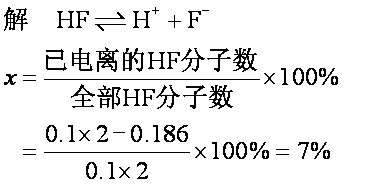 释义 | 电离度的计算 电离度的计算dianlidu de jisuan弱电解质在水中只部分电离,电离达平衡时,已电离的溶质分子数与溶质分子总数之比称电离度,用α表示。 例1 0.02mol·L-1醋酸溶液的电离度为2.96%,求该溶液中氢离子浓度。 解 醋酸为一元酸 [H+]=α·c=0.02×2.96% =5.92×10-4(mol·L)-1 答 溶液中的氢离子浓度为5.92×10-4mol·L-1。 例2 今有2mol·L-1氨水1500mL,NH3·H2O的电离度为1.3%,求已电离和未电离的NH3·H2O的物质的量。 解 1500mL溶液溶质的物质的量nB=CB·V=2×1.5=3(mol) 已电离的NH3·H2O物质的量为3×1.3%=0.039(mol) 未电离的NH3·H2O物质的量为3-0.039=2.961(mol) 答 已电离的 NH3· H2O的物质的量为0.039mol,未电离的 NH3· H2O的物质的量为2.961mol。 例3 0.1mol·L-1氢氟酸溶液2L,其中没有电离的氢氟酸分子为0.186 mol,求该浓度下氢氟酸溶液的电离度。 答 0.1mol·L-1 HF溶液的电离度为7%。 例4 0.5mol·L-1醋酸溶液的电离度为0.6%.把溶液稀释到0.2mol·L-1,其电离度将是多少?哪个溶液酸性较强? 解 α1=0.6%<5%,c1=0.5,c2=0.2,可用近 答 溶液稀释后电离度变大由0.6%增至0.95%,而溶液酸性较强的是0.5mol·L-1的溶液。 ☚ 酸与碱混合后溶液的pH值计算 水的离子积的计算 ☛ |
