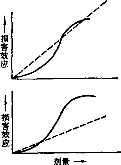 释义 | 电离辐射的远期效应 电离辐射的远期效应电离辐射的远期效应是指受照者个体在短时间内接受一定辐射剂量或长期慢性累积一定辐射剂量之后,经过较长时间(若干年甚至几十年)才表现出来的损害变化;群体则表现为损害发生率或死亡率增加。损害效应如出现在受照者本身称躯体性损害效应,如出现在受照者的后代称做遗传性损害效应。电离辐射对胚胎和胎儿引起的损害可视为躯体性损害效应的特殊情况。最近,从辐射防护的目的出发,为便于进行危害分析,一些国际学术组织将辐射损害效应分为随机性的和非随机性的两种。 随机性损害的剂量-效应关系示意图 ❶从辐射防护的实际应用出发,需要简化的模式; ❷如果相对生物效应(RBE)系数选用恰当,从高剂量得到的结果推算低剂量的发生率时不会低估,在多数情况下还会高估。高估多少,要看取曲线那一段的值,见右图。由此可见,这种估计方法是过于简化的,很可能是趋于保守的。 遗传性损害危险度的估计 遗传性损害是指电离辐射引起的配子基因突变和染色体结构或数目的改变,从而引起遗传性疾病或缺陷。在估算电离辐射对人诱发遗传性损害的频率时,目前还是依据动物实验,主要是小鼠实验观察的结果; 但大量的流行病学调查提供了人群自然发生率的数据和一些可供分析的资料。从遗传性疾病发生频率和加重遗传负担方面考虑,显性基因突变、性染色体连锁性状和由于染色体畸变引起疾病或缺陷的发生频率最受重视。常染色体显性基因的性状不需要同质结合就可以在后代表现出来,有害的性状在子一代就可以观察到。 一些国家和国际的学术组织,从五十年代起对小剂量、低剂量率的低LET辐射所致的遗传性损害作过多种危险度估算。在估算时,自然发生率采用大人群调查的结果,诱发的发生率则主要依据小鼠的实验数据;估算方法则采用加倍剂量法(经过若干代达到平衡的时候,使自然发生率增加一倍的剂量)和直接计算法(以单位剂量的预期发生率计算)。1977年联合国原子辐射效应科学委员会(UNSCEAR) 按100rad为加倍剂量估算的结果如表1。照射条件是低LET辐射、小剂量慢性照射。 ICRP根据UNSCEAR的数据进行了修改,作出如下估计:父母一方性腺受到照射后,最初两代后裔出现严重的遗传性损害的危险度约为10-2 Sv-1(10-4 rem-1),以后的世代再加一倍。假定职业性辐射工作人员从18岁至68岁的50年内,大约在三分之一的时间内受照射才有遗传意义,所以实际的危险度可取4×10-3Sv-1;对于公众成员取8×10-3 Sv-1(考虑到所有后代)。 表1 电离辐射所致人群的遗传损害效应的估计(生育一百万活产群体,每代受到lrad照射时) * 指每百万活产人数中的发生数 ** 常染色体显性和性染色体连锁性状假定为平衡时的五分之一,先天畸形及其下面二项为平衡时的十分之一 *** 假定突变成分占5%(摘引UNSCOEAR 1977 Report to the GeneralAssembly,with annexes,1977) 辐射致癌的危险度估计 电离辐射可以致癌已反复得到流行病学调查和实验研究的证实。最初人们只看到少数器官或组织可以在受照后发生恶性肿瘤(如骨肉瘤,白血病),但若延长观察时间,例如对日本原子弹袭击后的幸存者连续观察三十多年,发现很多器官或组织在受照后也可以发生癌肿,或是在群体中发生率有增长的趋势,这是因为很多癌肿的潜伏期很长。ICRP 1977年第26号出版物发表的电离辐射致癌危险度(以死亡率表示)的估计如表2。 表2 ICRP对电离辐射致癌的危险度估计