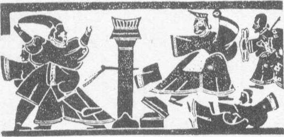 释义 | 画像石 画像石见“石刻画像”。 ☚ 花鸟画 画像砖 ☛ 古代名物 > 雕繪類 > 雕塑部 > 陵墓雕塑 > 畫像石 畫像石 huàxiàngshí 中國古代陵墓雕塑種類之一。指見於祠堂、墓室或石闕等物上裝飾性石刻。始於西漢,盛于東漢。題材廣泛,内容豐富,或描繪墓主生前生活,或表現神話傳説及奇禽異獸,以及舞樂百戲、亭臺樓閣、歷史故事、戰争漁獵等等。其雕刻技法一般分爲兩種:一爲“平面淺浮雕”,即陽刻法;一爲綫條表現法,即陰刻法。其分佈情况,從現已發現看,山東、河南、四川等地最多,陝西、江蘇、遼寧、山西、安徽、浙江等地亦有發現,尤以山東武氏祠、安邱董家莊漢墓、孝堂山郭氏祠、沂南北寨漢墓最爲著名。各地特色各具,山東質樸厚重,古風盎然;河南雄健豪壯,潑辣有力;四川精巧活潑,純樸自然。畫像石是我國古代文化寳庫中之珍貴遺產,在繪畫和雕刻史上都占有重要地位,也爲研究漢代政治、經濟、文化、習俗等提供了直觀史料。 画像石 051 画像石石刻装饰画。始于西汉,盛行于东汉、六朝及唐。它同样是厚葬的产物,主要用于地下墓室和地面上的祠堂等处 (如武梁祠画像石、孝堂山画像石等)。这是一种介于绘画与浅浮雕之间,但主要属于绘画的艺术形式,所以,学术界又称它为“汉画”。它的表现方法是在磨平的石面上先雕出物体形象,而将空余处薄薄雕去一层,使形象稍高出于底面,一些细部用线刻画。内容有历史人物、神话故事、狩猎歌舞、社会生产、生活等。 ☚ 李仙蕙墓室壁画 画像砖 ☛ 画像石 画像石huaxiangshi指在石料上雕刻平面图像的石刻艺术,盛行于西汉至唐,多见于墓室、祠堂,也有的刻于石碑、石阙、门楣、棺椁等处。在雕刻技法上有阴线刻、浅浮雕和凹雕等。阴线刻就是用阴刻的线条表达物体形象。浅浮雕是把所要表达的物体形象以外的石面普遍凿去1厘米左右,使物体的形象凸出石面。凹雕是在物体形象的轮廓线以内凿成凹面的技法。画像石的内容是十分丰富的,诸如生产劳动,历史故事,乐舞杂技,车骑出行,建筑,天象等,具有很高的历史、艺术价值。如1954年在山东沂南发现的一座东汉墓中,共有73块画像石,布满墓室的主要部位。其中一块画像石再现了东汉地主剥削农民收取地租的情景:画面左端是仓楼,右端是3辆满载粮食的车,车前有两个戴高冠的人袖手坐在长席上,他们是监督收粮食的地主或地主的管家,站在他们面前的4个人都是地主家的奴仆,有的忙着扫粮食,有的张着口袋装粮食。粮食堆旁地上放的大的是斗,小的是升。又如山东嘉祥武翟山下的东汉武氏祠内的石刻有历史故事,列女故事,孝义故事,神话传说等25种,有如历史画廊,其中一幅刻画了荆轲刺秦王的故事,柱子右侧是惊慌奔逃的秦王,秦王脚下是吓得瘫倒在地的秦舞阳,柱左是怒发冲天的荆轲,他拼力投出的匕首击中了铜柱,秦王的侍从拦腰抱住了他。柱旁有秦王撕断的衣袖,地面上的匣子里装着樊于期的头颅,一场惊心动魄的斗争跃然石上。 荆轲刺秦王 ☚ 秦汉的科学技术 画像砖 ☛ 画像石 画像石Huaxiangshi用于构筑墓室、石棺、享祠、石阙的刻有不同画面的建筑材料。画像石是继承东周画像铜器和秦汉壁画、漆画而发展起来的一种在石器上造型的艺术形式。画像石肇始于西汉晚期,发展于新莽时期,鼎盛于东汉。画像石的发现和研究大体经历了三个阶段,第一个阶段从北宋到本世纪初,可称为金石学阶段,主要限于对画像石内容和题榜的著录,如北宋赵明诚的《金石录》,南宋洪适的《隶释》、《隶续》,本世纪初王昶的《金石萃编》、翁方纲的《两汉金石记》等。第二阶段从本世纪初到60年代,这时期的研究主要是对各地零散画像石的收集、整理和对地面遗存的初步考释、研究。第三阶段从60年代中期到现在,这时期的研究已进入了区域类型,系统分期断代和艺术风格的研究。汉画像石的分布主要集中于四个区域: ☚ 画像砖 石窟壁画 ☛ 画像石 画像石Hua xiangshi古代祠堂或墓室中刻有画像的石质装饰物,称为画像石。最初始于西汉,盛行于东汉,后逐渐减少。画像石多为在墓室建筑的石材上,雕刻出人物或动物,建筑或树木.表现历史事件、故事情节、社会生活和生产活动等。表现技法有多种,主要有阳刻和阴刻两类,构图简洁明确,造型形象生动,强调大型的轮廓和动态,粗犷质朴,自然成趣,富有浓厚的装饰意味。著名的画像石有武梁祠画像石和考堂山画像石,还有沂南的画像石墓的作品,也具有自己的特点。通过画像石的欣赏,可以使我们看到古代人的生活侧面,也是了解当时政治、经济、思想、文化与艺术的宝贵资料。 画像石 ☚ 玉器 画像砖 ☛ 画像石古代墓室、祠堂(享堂)等的石刻装饰画。始见于西汉,盛行于东汉,至隋唐仍见。内容有历史人物、神话传说、社会生活和生产场景等。表现技法有阴线刻、阳线刻、浅浮雕等。是中国古代宝贵的艺术遗产。 |