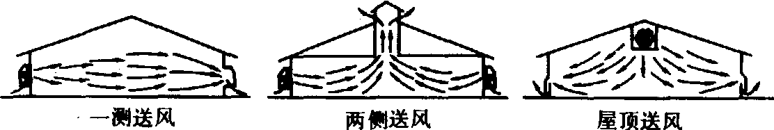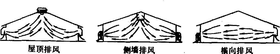 释义 | 畜舍机械通风mechanical ventilation of livestock house以风机为动力,驱使空气流动而形成的通风换气方式。同自然通风比较,它可以更有效地控制畜舍的温度、湿度以及气流运动,是密闭式畜舍实行环境控制的重要手段。由空气进气口、排气口、风机以及控制装置所组成的畜舍机械通风系统,通常可安排成排气系统、进气系统和进排气系统等三种形式,在畜舍内相应地形成负压、正压和等压三种状态。 图1 负压通风形式示意 正压通风系统 又称进气式通风系统,是利用风机将新鲜空气强制送入舍内,使舍内空气压力大于外界大气压力,迫使舍内污浊空气经过排气口流出舍外,从而形成舍内外的空气交换。正压通风便于对进入畜舍的新鲜空气进行加热、冷却和过滤等预处理,能有效地保证舍内的适宜环境状态,空气分布也比较均匀。但这种通风方式比较复杂、造价较高,管理费用也较大。根据风机安装的位置可以分为侧壁送风和屋顶送风(图2)。侧壁送风又可分为一侧送风和两侧送风。一侧送风为穿堂风形式,适用于小跨度畜舍,而两侧送风则适用于大跨度畜舍。屋顶送风由安装在屋顶的风机送风,从两侧壁的排风口排风。 图2 正压通风形式示意 联合通风系统 又称进排气通风系统,是一种同时采用机械送风和机械排风的联合形式,常在通风条件较差,单靠机械排风或机械送风达不到应有换气效果时采用,其功能可靠,但投资费用较高。在气候温暖地区,为了有助于通风降温,进风口一般设在较低处,由风机将舍外新鲜空气送到畜舍下部,而排风口设在畜舍上部,由排风机将聚积在畜舍上部的污浊空气抽走。在气候寒冷地区,为了避免冷空气直接吹向畜体,进风口一般设在畜舍上部,风机由高处向舍内输送新鲜空气,而排风口设在较低处,由排风机从下部将污浊空气抽走。 通风设备 风机是畜舍机械通风系统中的主要设备,一般分轴流式和离心式两种风机。轴流式风机流量较大而压头较低,符合畜舍通风所要求的较大的空气流量和较小的压头,所以,畜舍通风大都采用轴流式风机。离心式风机流量较小而压头较高,适用于送风距离较远、所需压头较高的通风系统。 |