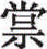 當“当”的繁体字。 上一条: 当 下一条: 挡 当當、噹ㄉㄤ;ㄉㄤˋdāng; dàng二1877①名器物的底儿。赣语。江西西北部。②名当中,中间。⑴中原官话。河南原阳〖 〗。⑵闽语。福建福州。魏应麒《福州歌谣甲集・自序》:「正月桃李开园~。」③名诱捕动物的器具。闽语。福建厦门〖 〗。鸟仔~‖鸟鼠~。④名当铺。古方言。洪惠畴《明代以前之中国方言考略》:「秦汉称质物之店曰~。」⑤动蹭刀,粗磨。胶辽官话。山东长岛〖 〗。~~刀。⑥动冲撞。官话。元李文蔚《燕青博鱼》第一折:「你做甚眼睁睁~翻人了。」元郑光祖《三战昌布》第一折:「不刺刺把赤兔马来~翻。」⑦动扶,搀扶。吴语。江苏苏州、吴县。清道光四年《苏州府志》:「扶曰~,去声。」1933年《吴县志》:「扶曰~,去声。」浙江青田〖 〗。⑧动遮蔽。冀鲁官话。河北新城。1935年《新城县志》:「今人谓遮曰~,读如党音。」⑨动握正。吴语。上海崇明〖 〗。⑩动比。湘语。湖南长沙〖tan45〗。在学习方面,他~不得他哥哥。⑪动伺候;守候。闽语。福建厦门〖 〗。~等‖~鸟仔‖~贼。⑫动跌,跌落。闽语。广东揭阳〖 〗。索一下断,箱~落去到,散去绳子一断,箱子跌了下去,散开了。⑬动可,也含点儿「应该」的意味。闽语。福建南部〖 〗。彼张纸不~弄破,我~写字‖你~唱歌,我不~讲话。⑭动(饭、菜)合口味。胶辽官话。山东牟平〖 〗。光喝点面汤哪~㖠。⑮量顿,餐。闽语。广东揭阳〖 〗。一日三~,猛早~,日斗~,甲猛暗~一天三顿,早餐,午餐和晚餐。⑯副正,恰好。闽语。福建永春〖 〗。油~热‖花~开。福建厦门〖 〗。鱼~肥‖拄~伊来。⑰副犹如,只当。湘语。湖南长沙。杨树达《长沙方言续考》:「《后汉书》卷八三《逸民向长传》云:『建武中,男女嫁娶既毕,敕断家事勿相关,~如我死也。』按:『~如我死』,谓我今虽未死,…假定作我已死也。长沙今言此正云『~』,读去声。」   當当(5次) ❶对;面对着。~陵阳之焉至兮《章·哀》 ❷值;遇;逢 哀朕时之不~《离》 羌迅高而难~《章·思》 羌鯈忽而难~《辩·八》 ❸在。八柱何~《天》