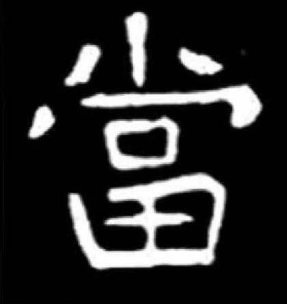 當担任,管理等:~家/~权/~官/担~/承~。又读dàng,恰当;作为;抵押:~真/~铺/适~/得~/正~/妥~。与“噹”无关。 〖當〗 (一)粵 dong1〔噹〕普 dānɡ ❶ 符合。許慎《說文解字》:「〜,田相值也。」韓非《韓非子.定法》:「夫匠者手巧也,而醫者齊藥也,而以斬首之功為之,則不〜其能。」(能:才能。) ❷ 正值,處在某時或某處,有詞語「〜場」、「〜時」等。蘇軾《念奴嬌.赤壁懷古》:「遙想公瑾〜年,小喬初嫁了,雄姿英發。」 ❸ 副詞,應當,應該。諸葛亮《出師表》:「〜獎率三軍,北定中原。」 ❹ 判罪。司馬遷《史記.廉頗藺相如列傳》:「臣知欺大王之罪〜誅。」 ❺ 把持,佔着。李白:「一夫〜關,萬夫莫開。」 ❻ 面對,當着,有成語「門〜戶對」。《孝經.諫諍》:「故〜不義,則子不可以不爭於父,臣不可以不爭於君。」 ❼ 遮擋,抵擋。歸有光《項脊軒志》:「前闢四窗,垣牆周庭,以〜南日。」 ❽ 擔當。陸以湉《冷廬雜識.卷七.陳忠愍公》:「是可〜前鋒乎?」 ❾ 副詞,將要。《出師表》:「今〜遠離。」