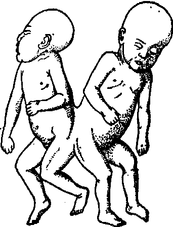 释义 | 畸形jīxíng❶生物体发育不正常 畸形jīxíng❶ 〈形〉生物体的某一部分发育不正常:先天畸形│有点儿畸形。 畸形jīxíng【释义】 畸形jīxíng形容生物体某部分发育不正常,泛指事物发展不正常,偏于某一方面。用于胎儿、肢体、牙齿、人脑等,也用于社会、经济、现象和发展、消费等。例如: 畸形jī xíng形容词。生物体某部分发育不正常,多比喻事物发展不正常,用于贬义。 畸形jī xíng❶ 生物体某部分发育不正常。1890年《日本国志》卷二十四:“外科: 炎症病、异物赘生病、外伤、耳病、眼病、畸形病。”1918年觉迷《西药指南》上卷:“阴茎异常短小,或为畸形,致不能勃起。” 反常 反常邪(~门;~劲) 乖(乖舛;乖常;乖节) 矫常 ☚ 相反 G 事情、情况 ☛ 动物生长 动物生长长出肉:生肉 ☚ 生长1 生育2 ☛ 发展 发展展 生发 开阐 推移 恢扩 伸张 发挥 发达 另见:变化 扩大 提高 迅速 趋势 兴旺 前进 ☚ 发展 向某个方向发展 ☛ 畸形malformation,deformation植物受害部分所表现增生增大型或减生型生长而造成的形态异常现象。在病理解剖上可分为3种: 畸形malformation系指机体的组织、器官形态出现与正常者不同的异常改变而言。包括先天畸形和后天畸形两大类。先天性原因亦很多,可由遗传产生,如多指(趾)症等;亦可由感染、中毒等因素引起,如腭裂、唇裂、双体畸形等。后天畸形,有的虽在生后逐渐出现形体改变,但亦可由先天因素造成;有的由于疾病、创伤而致,如脊柱弯曲、髋关节脱位并骨性愈合等。畸形后有些可以手术矫形治疗;有些可通过功能练习而逐渐恢复。 畸形植物染病后发生的增生性病变或抑制性病变。前者如生长发育过度,组织细胞增生,病部膨大形成肿瘤,枝或根过度分枝,形成丛枝、发根等;后者如生长发育不良,全株或器官萎缩等。此外,病部组织发育不均衡亦可导致卷叶、蕨叶等。畸形多由病毒或类菌质体侵染引起。 畸形机体、器官或组织的形态改变,并超出了正常范围。一种是胚胎发育异常的结果,如各种先天性心脏病、多指(趾)、唇裂等,称为先天性畸形;另一种与疾病、创伤等有关,如脊柱结核后的驼背、因某种原因而截肢等,称为获得性畸形。 畸形❶生物体某部分发育不正常。 畸形 畸形器官或组织的体积、形态、部位或结构的异常或缺陷,称为畸形。畸形按其发生的原因可分先天性畸形和获得性畸形两种。获得性畸形是指在出生以后因某种原因造成机体某部的形状、大小失常。如类风湿性关节炎所致之关节畸形,烧伤或骨折所致的肢体畸形,垂体肿瘤所致的肢端肥大症,痛风所致的手指畸形等。先天性畸形(通常简称畸形)是指机体在出生前即已存在的器官或组织的发育异常。此种畸形,有的在胎儿出生后立即可以发现,如唇裂、并指(趾)等;若畸形发生于机体内部,则出生后外表虽无异常,但可在生长发育中逐渐显现出异常体征,如先天性腹股沟疝; 有的尚需借助于特殊的检查方法,才能确定,如动脉导管未闭等。 图1 头胸联胎 颅部联胎 为头部相联的联胎,通常双胎发育均较完整,为对称联胎中较少见的一种。两胎可在颅顶骨相联,两胎头顶头连成一直线,足在两端,称顶部联胎;如两胎在额部联接,则两胎面对面相联,称额部联胎;如在两枕部相联则两胎背对背,称枕部联胎。以上三种联胎的胎儿各有独立完整的脑部,但硬膜及静脉窦可只一个。已有手术分离成功的报道。 臀部联胎 双胎对称,发育均较完整,但双胎背对背、在臀部即尾骶部联接(图2)。两胎联接处可仅限于表浅部,有分离成功的报告。联接较多时其骶椎尾椎常为单个,甚至直肠、膀胱、尿道也只一个。 图2 臀部联胎 小头畸形 指头与躯体其他部分的体积比例异常细小。由于脑的正常发育过程受到抑制或延缓所致。出生时脑的发育可相当于第3或第4个月时胎儿的脑,颅骨常有增厚,囟门和颅缝常早期闭合。如脑体积细小不是因为先天发育的缺陷,而是由于脑组织的破坏所致,则称为假小头畸形。小头畸形常伴有其他中枢神经系统的发育缺陷,如脊髓发育不良等。 肉眼观察大脑较正常小,偶见脑室扩张而象脑积水,但这不是由于脑脊液循环受阻,而是因脑实质少,脑室发生代偿性扩张所致。大脑某一部分的发育缺陷可较其他部分显著,例如当枕叶发育缺陷较重时可使小脑无物掩盖,额叶发育缺陷时可使脑岛暴露。此外,脑回的形状还可发生明显改变。镜下观察可见脑皮质细胞减少,白质也有减少,神经细胞的配置常保持胎儿特征,髓鞘化亦有延缓,但不是所有的神经纤维束均同等程度受累。 发生这种畸形的幼儿面部表情异常,智力发育明显迟钝。本病发生可以是遗传性的,有染色体异常如三体型13~15和三体型17~18,或妊期感染(如风疹、细胞巨病毒包涵体病、弓形体病)或放射线照射所致。 巨头畸形 由于脑异常长大而使头变大所致。易被误诊为脑积水,但脑室的大小正常或稍有扩大,颅内压不增高,颅缝亦无异常分开,前囟虽然常较正常大,但软而无张力增加。患者常有智力发育迟缓。 肉眼观察,脑可普遍性增大,或一部分较其他部分大一些。如大脑半球可长大明显而小脑长大较轻。脑回的形状较正常更为复杂,切面见脑皮质很厚,皮质下白质质韧,有神经胶质增生。组织学上大脑皮质细胞的层次正常,神经细胞无细胞学上的异常,常有中度的神经胶质增生。 脊柱裂 胚胎发育第11周时,脊柱