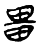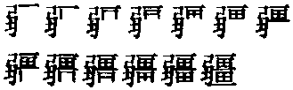 疆疆,甲骨文作 ,金文作     (摹本),小篆作 ,或體作 。 甲骨文寫作兩個 “田” 字。金文第一字形沿襲甲骨文字形,第二、三字形在 “田” 中或上中下增横綫,明顯是表示田界,隸定作 “畺”,是 “疆” 的初文。金文第四字形从弓,畺聲,隸定作“彊”。《説文》解釋 “彊” 的意思是 “弓有力”,説明 “彊”字是以弓有力表示强大有力,是 “强大”之 “强” 的本字。因 “彊”與 “畺” 形音俱近,故在表示弓有力的 “彊” 字上增意符 “土”或 “阜” 表示疆土。本義是田界,引申爲疆域、領域、邊陲等義。文獻或讀爲 “强”。卜辭用作地名。銘文或用田界、疆土、邊際等義。 楚簡帛文作  ,細味三體,或省“弓”,或省“土”。“弓” 訛近 “人”。 疆jiāng(19画)