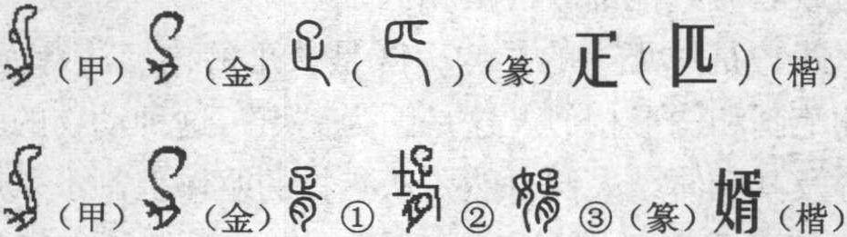 释义 | 疋(匹)婿 母系族落的夫君 疋(匹)婿 母系族落的夫君(甲) (篆) 从母系社会的一条带筋的兽腿,到华胥、赫胥两个族落的形成; 从湑水河畔的一群青年男女撩拨嬉戏,到由 “疋” 成 “婿” 的一路更迭,时间过了近万年,“疋”这个汉字的字根无不充满中华文化的精彩蕴质,“疋”与湑水一样,带着这种浓浓的蕴质,悄悄地流淌着,流进汉江,流进长河,汇入中华文明的大海。 疋、婿,仍然是两个文化信息蕴涵相当丰富的汉字。 大约七千到一万年前,我国的西部青藏高原向东迁徙的以牧羊为生的母系羌族部落,这个部落虽然落脚在甘肃西部天水、陕西西南部凤州一带,却仍然过着流动的牧羊和渔猎生活。她们是隧人氏的后裔,在这里繁衍生息,部族分支也得到了发展,形成了兹、华、赫、胥和华胥、赫胥、雷泽、盘瓠、仇夷、弇兹等族落群体。赫族、华族是以牧羊为生的母系部落群体,居住在今陕西西南部凤县、凤州和甘肃东南部两当、徽县、成县一带;胥族是以渔猎为生的母系部落群体,居住在今太白山南麓脚下的太白、周至山区。两族居聚距离较近,在禁止族内婚姻的情况下,长期通婚,它的裔支后来便称华胥族(也即华胥氏)。这便引出了 “疋(匹)——胥——婿” 几个文字的来龙去脉。 对于甲骨文 “疋” 的构形,历来文字大家们聚讼纷纭,至今莫衷一是。孙诒让释 “曲”; 杨树达释“歱”;陈汉平释“膝”、释“脚、胫、胻”;李孝定、徐锡台释“足”。《说文》: “疋,足也。上象腓肠,下从止。” 许慎所说的腓肠即腓肠肌,是指人的小腿后面浅层的大块肌肉,即小腿肚子。如斯所说,是人“足”无疑了。其实不然,取象于人腿就把对象弄错了。 甲骨文的 “疋” (音疏、音批),是个象形兼会意字。上从不规则的上大下小的条形状态,下一向左的止,“止”在甲骨文时是脚的标意符号。全形提供给我们的信息是: 动物被割下的腿臀部分,上部的半圆形点缀乃髁骨髀臼裸露的标示,是造字者的刻意之作,后来 “疋” 也泛指动物去掉皮毛和内脏的胴体。金文的“疋” 更具象形韵味,“止” 的右上部增加一小点,突出了动物腿脚的特征。 匹,疋之异体字; 疋,胥之初字; 疋,婿之根字。 远古时的胥族是以狩猎为主要生活来源的部族,对于动物的 “疋”产生崇拜心理是很自然的事,胥族便将“疋”画出来作为族徽加以敬奉也在情理之中,并以“疋”作为族名与其他部族群落相区别。 匹,是 “疋” 的异构,匹是从疋的构形演绎而来,因此笔画和构形相似。这是因为 “疋” 这种动物的腿臀部分及其胴体,人们自然要从猎物的躯体上割下来用肩臂掮扛,后来不知过了几千年,布帛问世了,布帛与“疋”一样成了人们的生活必需品,一定数量的布帛也用肩臂掮扛,匹就演变为量词。《汉书·食货志》下: “布帛广二尺二寸为幅,长四丈为匹。” 因为“匹” 的重量与柔软度和 “疋” 在感觉上近似,于是,匹与疋的意蕴就更加接近。又因为 “匹” 是人们生活中普通人的普通用品,故“匹”有庶人、平民和地位低微的蕴意,如匹士、匹庶、匹夫等。匹练,原指一匹白绢,传说颜回望吴门,见一匹练,形如白马飞驰。后来孔子就说了一句: “白马,芦芻也。” 从此“匹练” 就是白马的代称,“匹” 也就成了计数马的量词。李白有《赠武十谔》诗句: “马如一匹练,明日过吴门”; 苏东坡也有: “岩头匹练兼天净,泉府真珠溅客忙” 的佳句。由于 “匹” 与 “疋” 有相似之处,故“匹”(疋)便产生“好像”、“对比”、“比较”、“对手”、“匹偶”、“匹配”等引申之意。《说文》引用了《管子·弟子职》: “问疋何趾。” 是说 “疋” 这种脚腿到底是人的?还是兽类的?乌乎! 有关“疋”的阙疑竟然延续了两千多年。 从“疋” 所组构的汉字都与动物和动物腿臀部分有关: 蛋: 疋从虫,会意字。鸟类和龟、蛇类动物所产的卵。 疍: (音旦) 疋从旦,形声兼会意字。广东、福建一带水上渔民早起渔猎。 楚: 疋从林,会意字。古时人们在林中狩猎需清晰辨明兽足的印痕,以确定其种类和方向。但是跟踪猎取动物需在林中穿梭,艰难苦楚自不必状。 旋: 疋从也声, 形声兼会意字。标示上古时代狩猎时人与猎物盘旋、旋转、周旋、相拼、绕圈子的形状。 疑:按楷书构形的标示,是狩猎时人们用兽足印痕辨别猎物的种类、雌雄、去向等,而仍存有疑惑之处。 疏: 疋从流省,疋也声,形声兼会意字。疏是虽用水洗过但尚未烹饪的动物腿臀,作祭祀的供奉品,故疏有 “赤脚”、“清除”、“洗涤”、“粗粝”、“陈列” 等引申之意。旧时向皇帝书面陈述政见称上疏,其含意是取“疏” 的原本之意: 虽经 “洗练” 但仍是 “粗粝” 的谏诤之言。 蔬: 疏从 “艹”,形声兼会意字。疏,原本是供人们享用的食物,当然是人们餐桌上的一道美味佳肴了,汉魏时始加草字头就成了蔬菜的 “蔬” 了。而古今字书辞典中对蔬的解释是:可以做菜吃的草本植物。蔬菜是由单纯草本植物构成的吗?这一解释未必全面准确。看来 “疏” 是个容易被人疏忽的字。 疋是胥的初字。疋本为动物被肢解、割裂开的腿臀部分,而字形演变到小篆时象形韵味基本消失,人们从字形很难辨别出是动物的腿臀部分,故增加形符 “肉”(甲骨文、金文、小篆时的 “肉” 形,楷书隶作 “月”),以刻意提示人们 “疋” 的质的,这就另造出了一个新字“胥”
