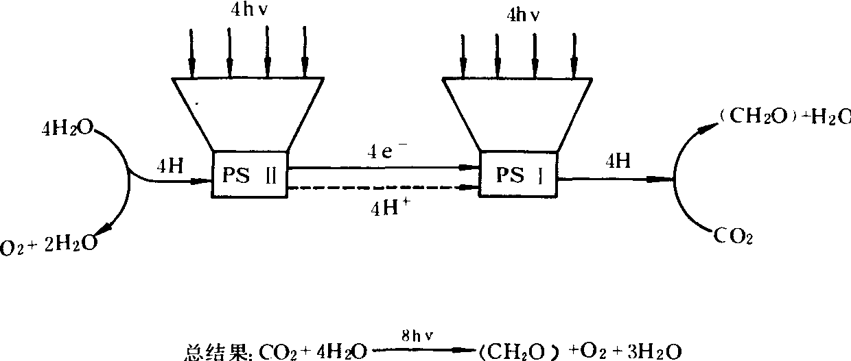 释义 | 病植物光合作用失常abnormity of photosymthesis in diseased plant植物受病原物侵染后叶绿体形态与功能的改变。其结果导致植物同化产物减少,生长发育受抑,农产品的产量和品质下降。植物的正常光合作用是将太阳能转化为化学能,即三磷酸腺苷(ATP)和还原型烟酰胺腺嘌呤二核苷酸磷酸(NADPH),它们用于细胞的各种合成途径。光合细胞以水作为氢供体,还原CO2形成碳水化合物并释放氧(见图)。 光合作用的总反应示意图