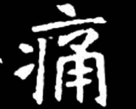 ❹ 切肤之痛|三病四痛|衔哀茹痛|灼艾分痛 痛 金文; 篆tòng[疒(病,意符) + 甬(聲符) → 痛(《説文》:“痛,病也。從疒,甬聲。”痛:疾病或創傷等引起的一種難受的感覺,中國醫學認爲“通則不痛,痛則不通”。引申爲感情上的悲傷;盡情地、徹底地〈痛快〉。)] [春秋] 左丘明《左傳·成公十三年》:“諸侯備聞此言,斯是用痛心疾首。”(諸侯聽了這番話,都極痛恨。) [西漢] 司馬遷 《史記·秦始皇本紀》:“誅斯、去疾,任用趙高。痛哉言乎!人頭畜鳴。”(秦二世殺掉李斯、馮去疾,專用趙高。令人痛心呀! 長了人頭的畜生。) 痛tòng(12画)