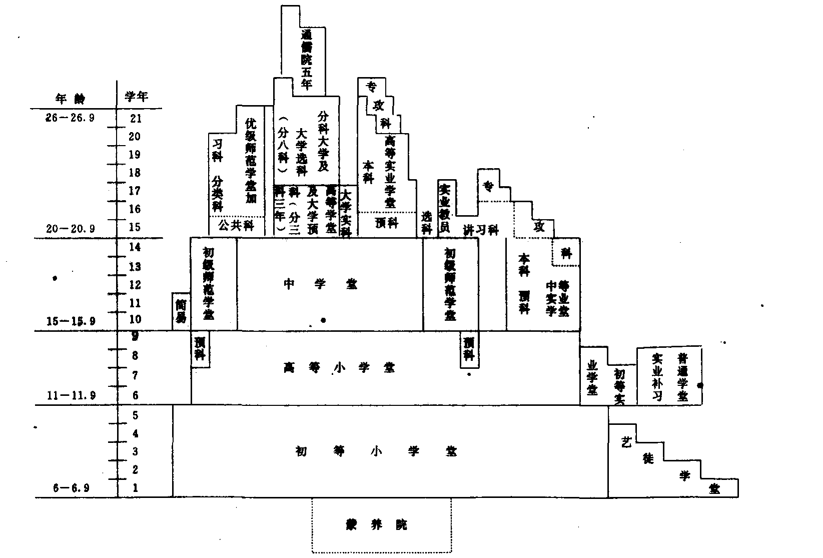 释义 | 癸卯学制见“奏定学堂章程”。 癸卯学制 021 癸卯学制中国近代第一个正式施行的学制。即1903年制定,1904年1月公布的《奏定学堂章程》。指导思想是:“中学为体,西学为用”。课程设置上中西兼学,但特别注重读经。教育年限为小学9年,中学5年,高等学堂及大学6至7年,通儒院5年。分普通学堂、师范学堂、实业学堂三个系统。另设译学馆、进士馆。实行到辛亥革命为止。 ☚ 历事 壬子癸丑学制 ☛ 癸卯学制 癸卯学制guimao xuezhi1902年,清政府公布了《钦定学堂章程》(即《壬寅学制》),但未见实行。1903年,张百熙、张之洞、荣庆又受命重新拟定了《奏定学堂章程》。清政府于1904年1月正式公布了这一章程,并令在全国施行。因公布之时正值癸卯年,故这一章程又称为《癸卯学制》。它包含着从小学到大学的完整体系。从纵的方面看,整个学制分三段六级:第一阶段为初等教育,设初等小学堂5年,高等小学堂4年,另设蒙养院;第二阶段为中等教育,设中学堂5年;第三阶段为高等教育,设高等学堂或大学预科3年,分科大学堂3~4年,通儒院5年。从横的方面看,与高等小学堂平行的,有实业补习学堂、初等农工商实业学堂和艺徒学堂;与中学堂平行的,有初级师范学堂,中等农工商实业学堂;与高等学堂平行的,有优级师范学堂,实业教员讲习所,高等农工商实业学堂。《癸卯学制》规定,儿童7岁入学,从入初等小学堂到通儒院毕业共需26年,是我国最长的一个学制在课程方面,《癸卯学制》规定,初等小学堂分完全科和简易科两类,均为5年。完全科的必修科目为修身、读经讲经、中国文学、算术、历史、地理、格致、体操八科,随地方情形而定的图画、手工一科或两科为随意科。简易科的科目为修身、读经、中国文学、史地格致、算术、体操五科。高等小学堂的学科为修身、读经讲经、中国文学、算术、中国历史、地理、格致、图画、体操九科,根据地方情形而加的手工、农业、商业等为随意科。中学堂的学科分十二种:修身、读经讲经、中国文学、外国语(东语、英语或德语、法语、俄语)、历史、地理、算学、博物、物理及化学、法制及理财、图画、体操。高等学堂的学科分三类:第类预备入经学、政法、文学、商科等入学,第二类预备入格致、工科,农科大学,第三类预备入医科大学,各科又根据各自的需要设立专习科目。大学堂设经学科、政法科、文学科,医科、格致科、农科、工科、商科等八科分科大学,它们的课程各自具有具体规定。另外,《癸卯学制》对于师范教育系统和实业教育系统的课程设置也分别作了非常具体明确的规定。《癸卯学制》从公布起一直施行到1911年清朝灭亡,是中国教育史上最早颁布并在全国施行的具有资本主义色彩的新学制。虽然它具有浓厚的封建性、等级性和买办性,但它改变了中国长期以来形成的封建式的官学、私学、书院等学校形式,为中国现代形式的学校制度的建立奠定了基础,在中国教育制度发展史上占有一定的地位。 ☚ 维新运动中的教育 壬子癸丑学制 ☛ 癸卯学制 癸卯学制guimao xuezhi清末颁定的第二个学校系统,是中国正式实行了的第一个近代学制,颁定于1904年1月(光绪二十九年十一月),正是癸卯年,故称癸卯学制,也叫奏定学堂章程。是在前一年的钦定学堂章程的基础上,由张百熙、荣庆、张之洞重订的,包括《学务纲要》、《大学堂章程》(附《通儒院章程》)、《高等学堂章程》、《中学堂章程》、《高等小学堂章程》、《初等小学堂章程》、《蒙养院章程及家庭教育法章程》、《优级师范学堂章程》、《初级师范学堂章程》、《实业教员讲习所章程》、《高等农工商实业学堂章程》、《中等农工商实业学堂章程》、《初等农工商实业学堂章程》(《附实业补习普通学堂及艺徒学堂各章程》)、《译学馆章程》、《进仕馆章程》、《各学堂奖励章程》、《各学堂管理通则》、《任用教员章程》等。普通教育分成3段7级:初等教育3级,包括:蒙养院;初等小学堂,5年;高等小学堂,4年。中等教育阶段1级,5年。高等教育阶段,3级:高等学堂(大学预科),3年;分科大学堂,3~4年;通儒院,5年;共11~12年。普通教育若不计蒙养院年限,尚需25~26年。此外还有实业学堂、师范学堂、进仕馆、译学馆等。与高等小学堂平行的有实业补习普通学堂、初等农工商实业学堂、艺徒学堂;与中等学堂平行的有初级师范学堂、中等农工商实业学堂;与高等学校平行的有优级师范学堂、实业教员讲习所、高等农工商实业学堂、进仕馆、译学馆等。这个学制实施到辛亥革命后南京临时政府成立。学制中规定的蒙养院制度,是我国最早的学前社会教育机构。 ☚ 壬寅学制 奏定蒙养院章程及家庭教育法章程 ☛ 癸卯学制 癸卯学制Guimao xuezhi中国近代颁布的关于学制的系统文件,亦是中国废除科举制度后第一个正式颁布施行的新式学制。1904年1月,清政府公布由张百熙、荣禄、张之洞参照日本学制拟订的《奏定学堂章程》。是年为旧历癸卯年,故称之为癸卯学制。该学制的指导思想是“中学为体,西学为用”。规定学堂的立学宗旨是“以忠孝为本,以中国经史文学为基,俾学生心术壹归于纯正,而后以西学论其知识,练其艺能,务期他日成才,各适实用”。该学制制定了各级各类学堂的章程,及学堂管理、教员任用等章程。包括:《大学堂章程》(附通儒院章程)、
